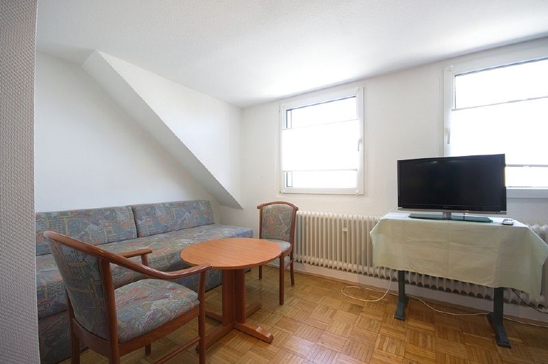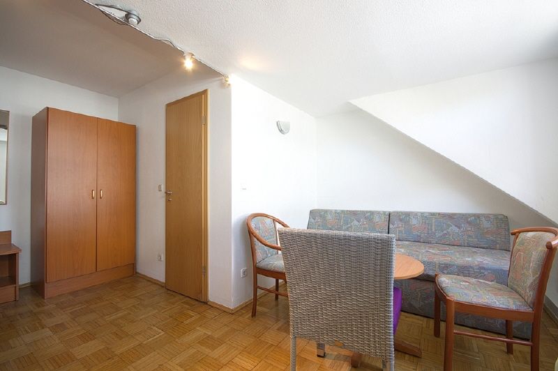 Zimmer mit hotelähnlicher Einrichtung. Die Ausstattung besteht aus einem großen Bett, Sat-TV, Sitzecke, Garderobe, Kleiderschrank und einem Kühlschrank. Zu dem Zimmer gehört ein eigenes Duschbad. Internetzugang ist über W-LAN möglich.