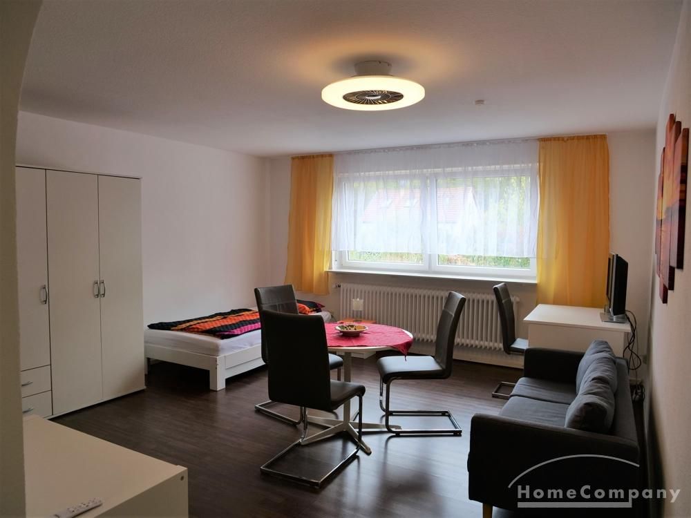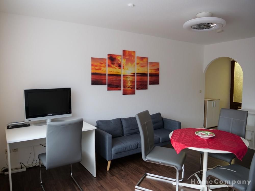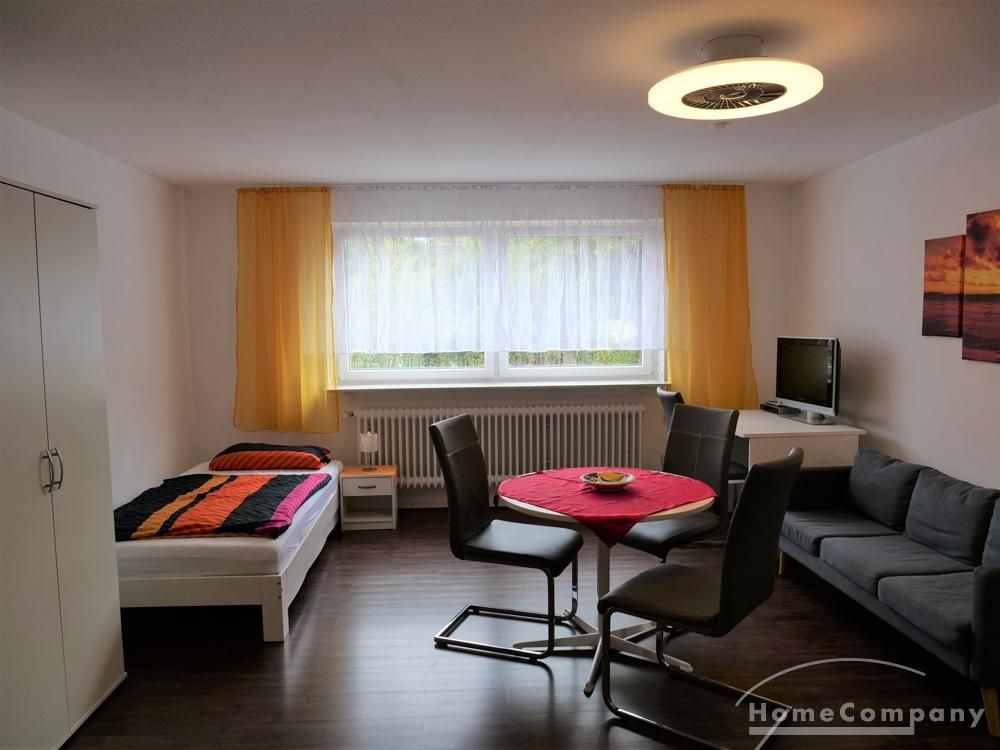 Das Apartment befindet sich im Souterrain eines Einfamilienhauses. Die Wohnfläche beträgt ca. 37 m². Über einen separaten Eingang gelangt man in eine kleinen Flur. Von dort geht es in das kombinierte Wohn-, Schlaf- und Arbeitszimmer. Zum Apartment gehört eine kleine Küche, sowie ein Bad.