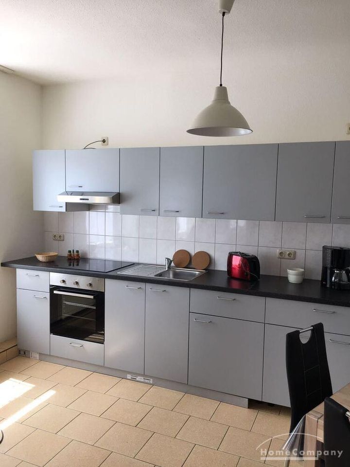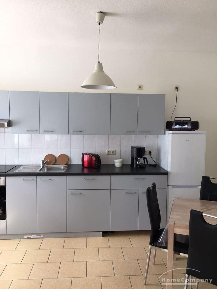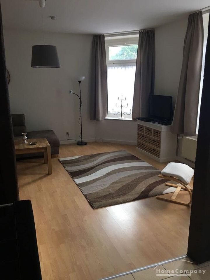 Neu eingerichtete Wohnung im EG eines Mehrfamilienhauses mit kleinem Flur, Wohnzimmer mit großer, offener Küche mit Kühlschrank,Spüle,Herd mit Backofen,Esstisch und Stühle, ausziehbare Couch und TV, Schlafzimmer m.Doppelbett und Kleiderschrank,Bad mit Wanne u.WASCHMASCHINE, WLAN – Miete für 2 Personen – mit Vermieter vereinbaren!!