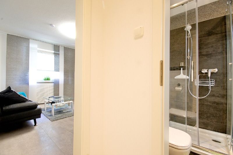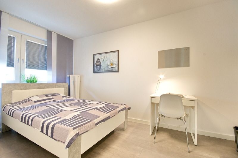 1,40 m breiten Bett ausgestattet, Kleiderschrank und kleiner Arbeitsplatz stehen ebenfalls bereit. Das Duschbad ist modern. Internetanschluss über Unitymedia vorhanden. Eigene Waschmaschine und Trockner im Waschkeller. Trockenraum vorhanden.