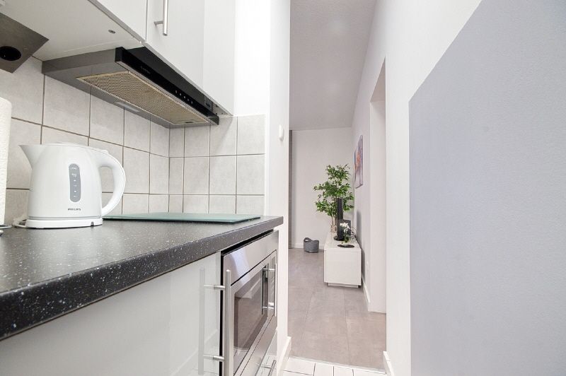 In einer ruhigen Seitenstraße gelegenes, sehr gepflegtes Mehrfamilienhaus. Die Wohnung befindet sich im Hochparterre, es handelt sich um ein Nichtraucher-Angebot. Sehr gute öffentliche Verkehrsanbindung: mehrere Straßenbahn- und U-Bahn-Haltestellen in der Nähe, der Hauptbahnhof ist ca. 700 Meter entfernt. Restaurants, Theater und Einkaufsmöglichkeiten liegen im direkten Umfeld. Die Konzerngebäude von RWE, HochTief, Evonik und weiteren Firmen sowie die RÜ-Flaniermeile sind in wenigen Minuten zu Fuß erreichbar. Die Miete beinhaltet bereits die Betriebs- und Heizkosten sowie Strom und Internetnutzung.
