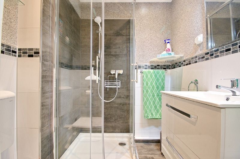 Vollständig modernisiert und neu eingerichtet. Wohnraum – ausgelegt mit hochwertigem Laminat – mit Sofa, Lowboard, internetfähiges TV-Gerät und Essplatz, integrierte Pantryküche mit Doppelkochfeld (Induktion), Spüle, Kühlschrank (Gefrierfach), Microwelle/Backofen und Kaffeemaschine. Das Schlafzimmer ist mit einem