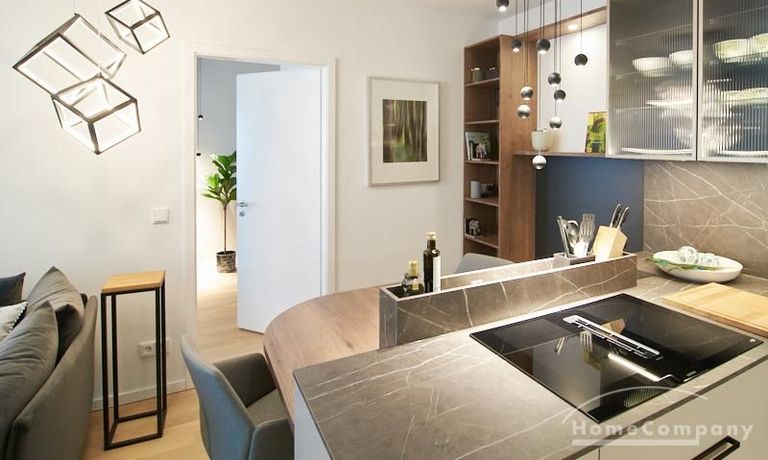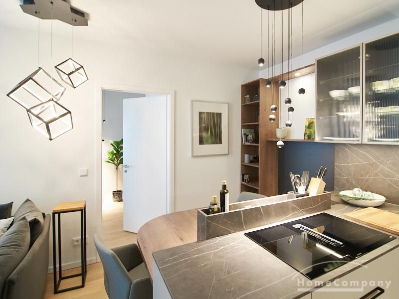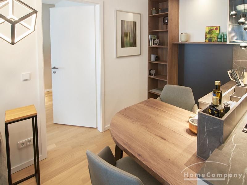 Gut geschnittene 2-Zimmer-Wohnung mit 50 qm Wohnfläche plus Terrasse. Sehr exklusive Möblierung und Ausstattung mit Markenküchengeräten und Tischlereinbauten/Möbeln. Es handelt sich um einen Neubau (Baujahr 2022, Möblierung 2023) mit Fußbodenheizung und Echtholz-Parkettböden. Es befindet sich ein Waschtrockner in der Wohnung. Eine separate Ankleide steht zur Verfügung. Smart-TV über Magenta-TV. In direkter Nähe befinden sich Einkaufsmöglichkeiten, Cafés, usw. Der Hauptbahnhof ist drei U-Bahnstationen entfernt; die Außenalster ist fußläufig mit einem Spaziergang am Eilbekkanal erreichbar.