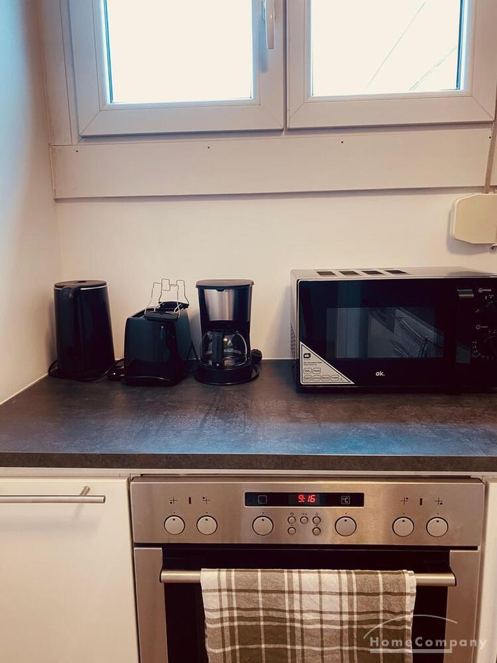 Modern möbliert mit separater, voll ausgestatteter Küche.