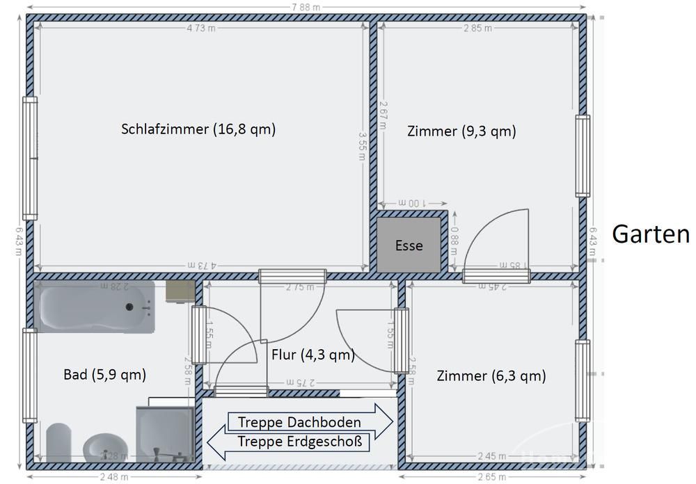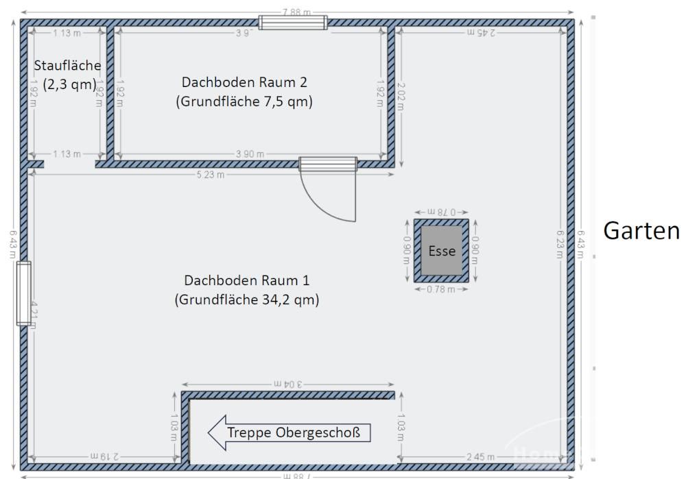 Im Dachgeschoss ist eine Nutzfläche von ca. 44 m² verfügbar.