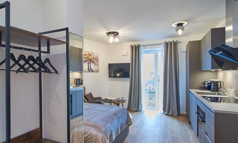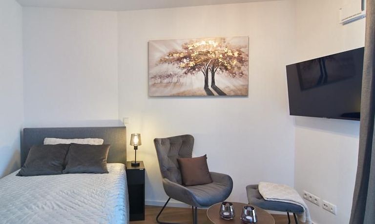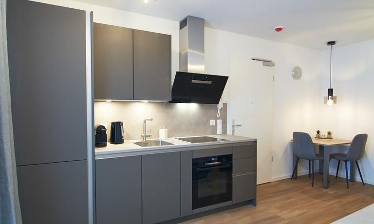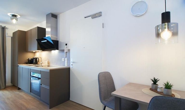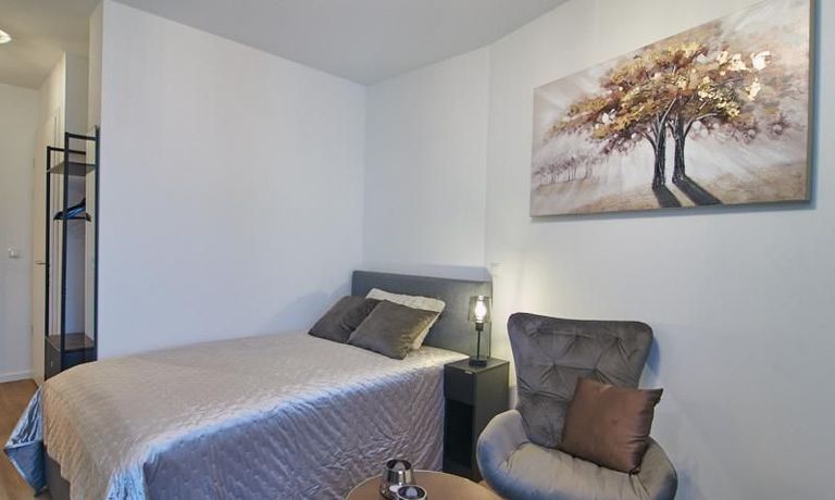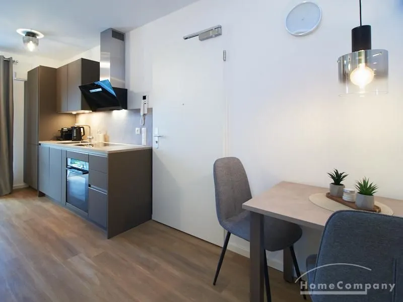 Das in 09/2023 neu eingerichtete und sehr gut ausgestattete Apartment befindet sich in einem Neubau. Bodentiefe Fenster, Fußbodenheizung und ein schöner Vinyl Designboden schaffen ein komfortables Wohngefühl. Das Apartment ist mit einer hochwertigen offenen Einbauküche in angenehmem Farbton und Markengeräten und Caressi Spüle ausgestattet. Im Wohnraum steht ein 1,20 breites Bett, ein gemütlicher Sofabereich mit smart TV und ein Esstisch zur Verfügung. Im Eingangsbereich befindet sich die Garderobe. Die Waschmaschine steht in einem separaten Abstellraum zur Verfügung. Hier bietet sich auch viel Platz in den dort befindlichen Regalen. Das sehr komfortable Bad verfügt über eine XXL Dusche und hochwertige Armaturen. Vielfältige Einkaufsgelegenheiten für den täglichen Bedarf, Gastronomie und kleine Läden befinden sich in unmittelbarer Nähe. Der nahe gelegene Bramfelder See lädt zu erholsamen Spaziergängen nach Feierabend ein.