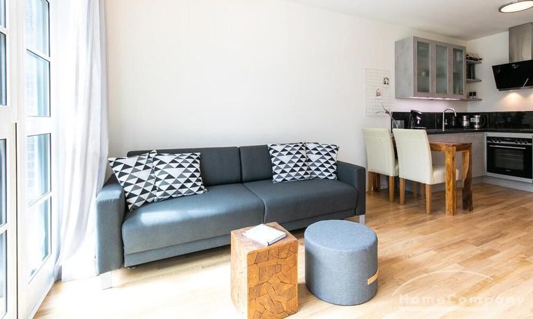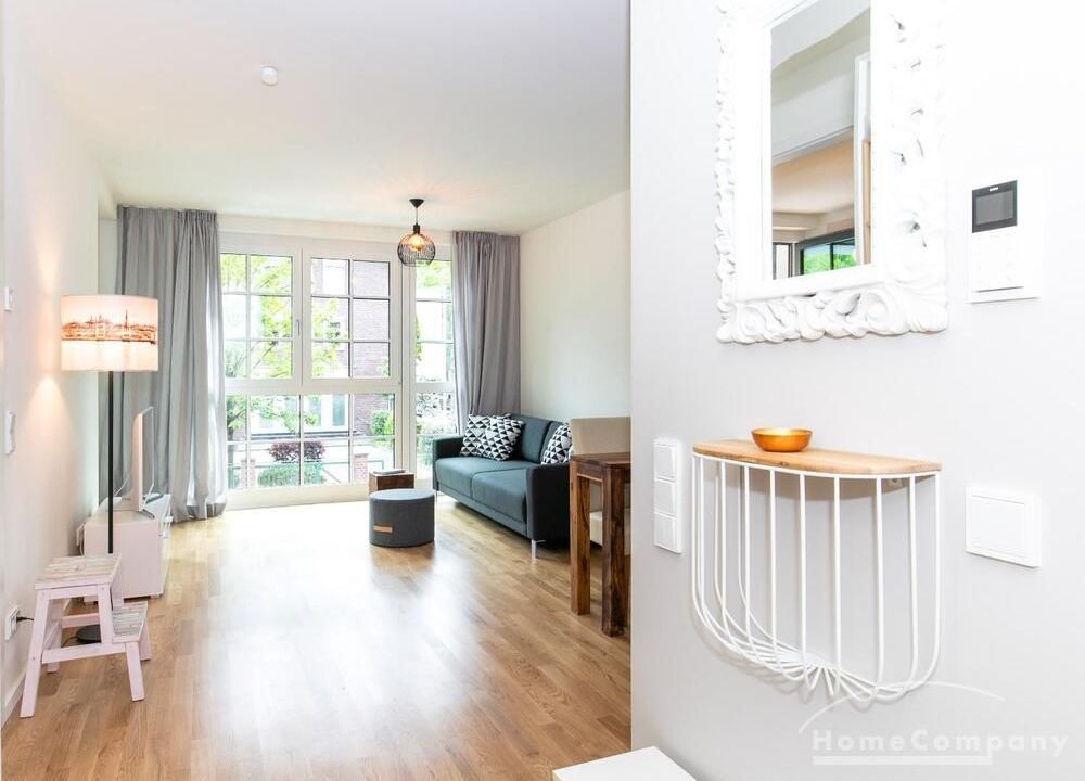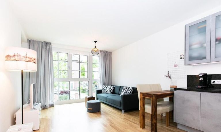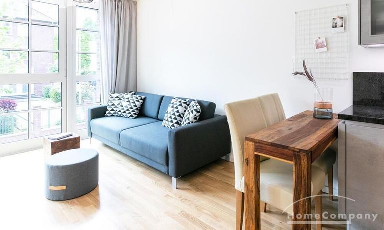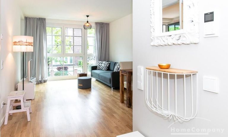 Die Wohnung ist auf dem Gelände des historischen Firmensitzes in den Kühnehöfen gelegen und wurde in 2020 neu ausgestattet. Innovative Technik bietet besonderen Wohnkomfort. So sind beispielsweise die Fenster mit einer dezenten Spiegeloberfläche versehen um perfekte Privatsphäre zu gewährleisten. Besonderen Wohnkomfort bietet auch die Fußbodenheizung.
