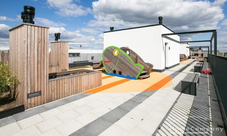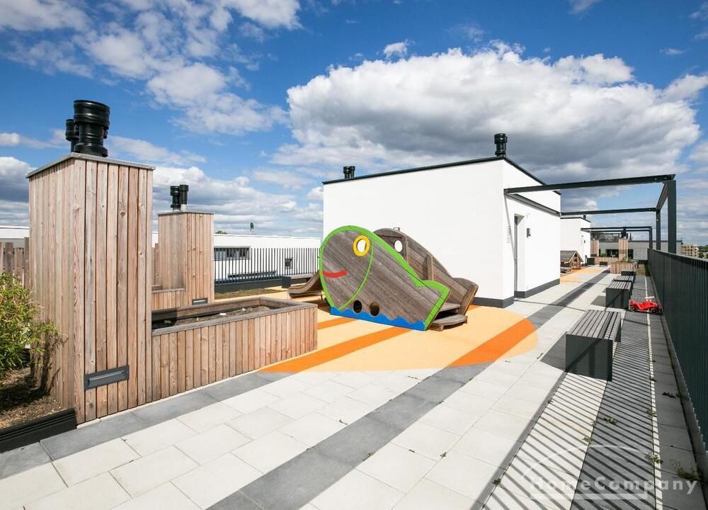 Ein besonderes Highlight ist die nur von der Hausgemeinschaft genutzte Dachterrasse. Hier kann man an langen Sommerabenden einen weiten Panoramablick über Hamburg genießen. Viele Hamburger Wahrzeichen, wie der Michel, die tanzenden Türme, die Elbphilharmonie und der Hafen liegen im Blickwinkel.