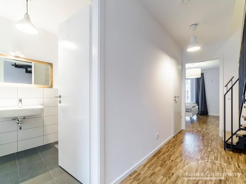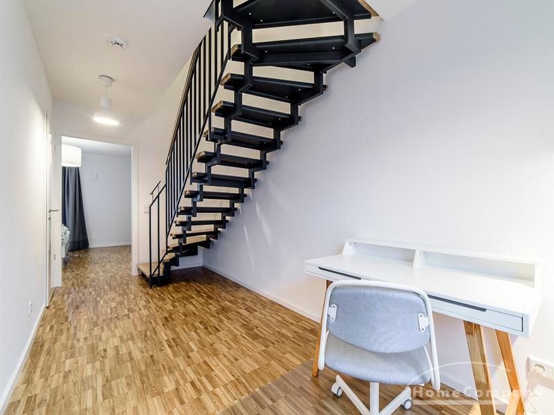Maisonettewohnung im Neubau, Baujahr 2017. Die Wohnung ist modern und praktisch eingerichtet und verfügt über einen Balkon zum Innenhof. Das Schlafzimmer, sowie das Wohnzimmer sind zum sehr ruhigen Innenhof orientiert. Die Wohnung ist mit einer100MBit Internetverbindung ausgestattet.