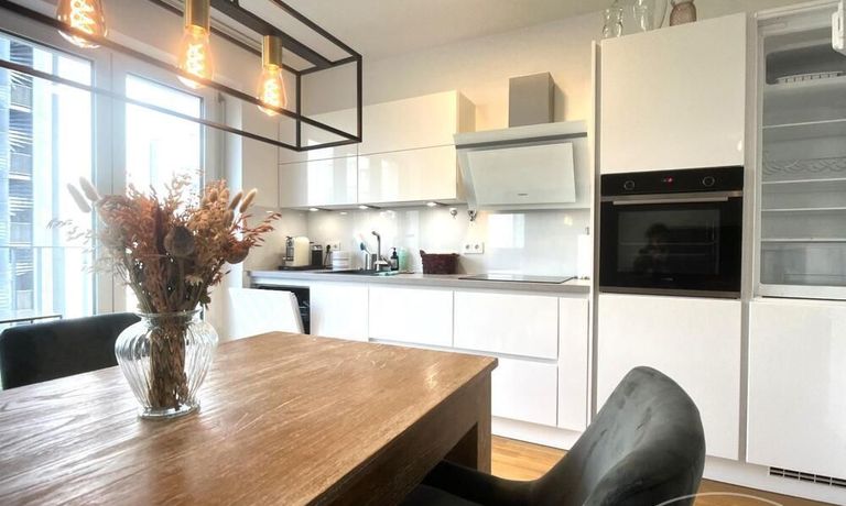 Die Wohnung befindet sich in der Bürostadt von Niederrad, unmittelbar in der Nähe des Niederräder Bahnhofs. Marktketten wie Aldi, DM und Edeka befinden sich direkt im Gebäudekomplex. Auch die Anbindung für Pendler an die A5 ist ideal. Alternativ stehen am Bahnhof die S-Bahnlinien 7,8 und 9 zur Verfügung. Der Main und Naturflächen befinden sich ebenfalls in Laufdistanz.