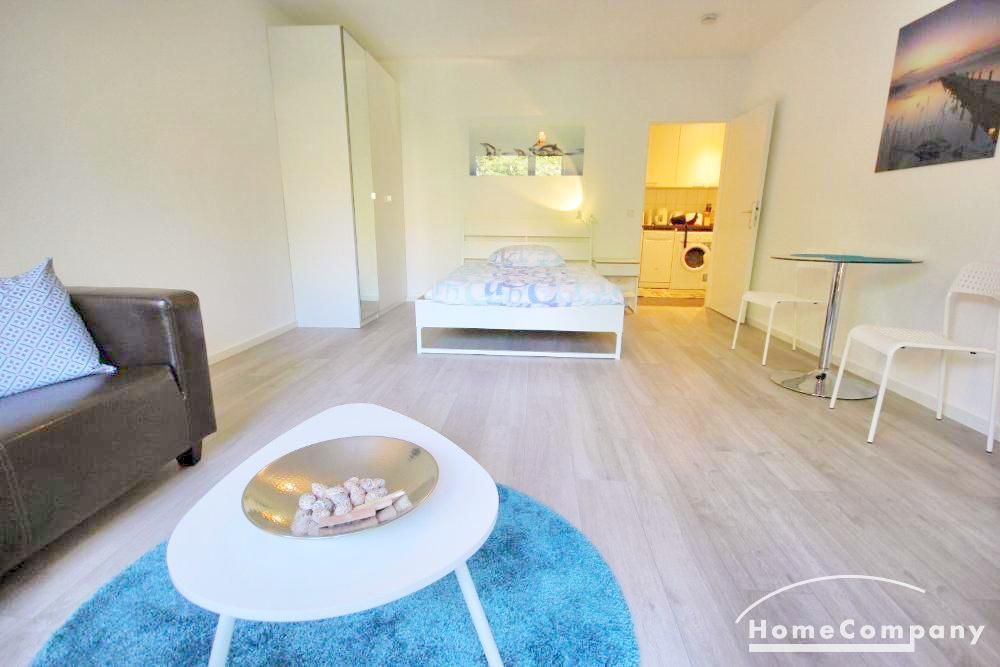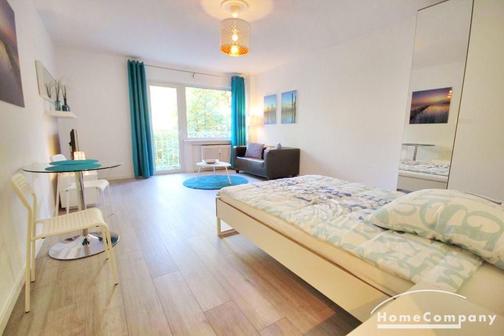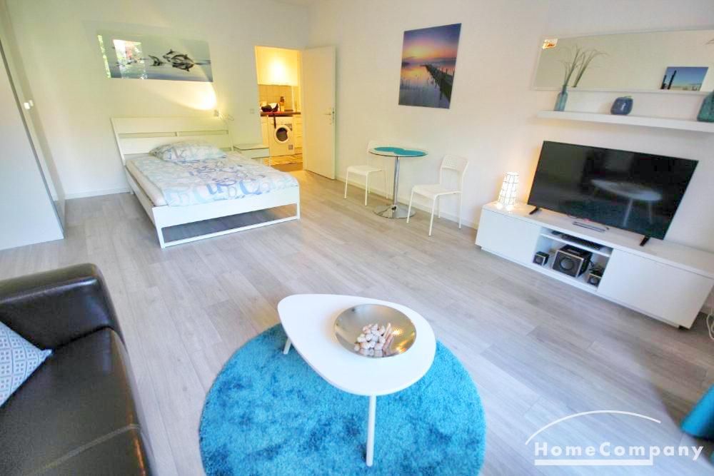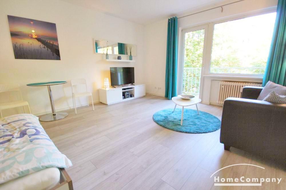 Helle möblierte 1 ZW-Wohnung im modernen Design mit Balkon. Moderne Architektur mit großen Fensterflächen für viel Licht.