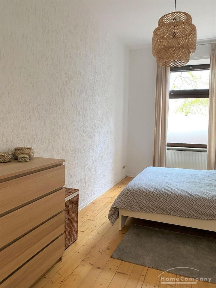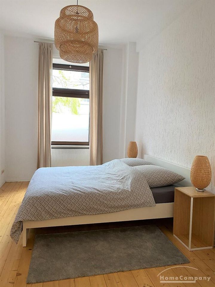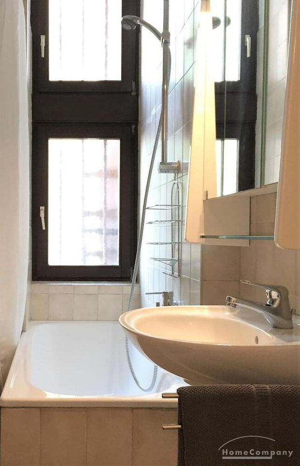 Die moderne Altbauwohnung mit viel Charme befindet sich im Hochpaterre eines gepflegten Eckhaus nahe der populären unteren Bergerstrasse im Nordend. Sie ist sehr ruhig gelegen, hat hohe Altbaudecken und große Fenster, daher sehr hell.