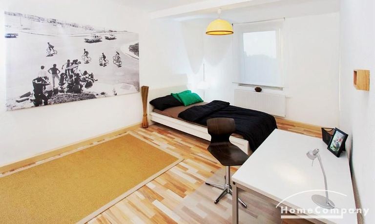 Wohnen+Schlafen: modern eingerichtet mit Doppelbett, Schreibtisch etc.