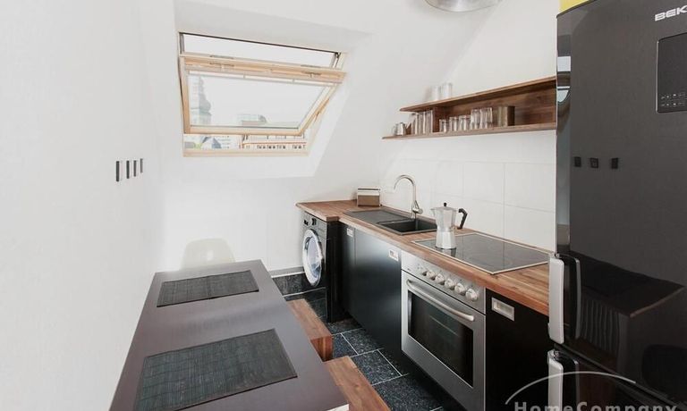 Renoviert und sauber, moderner Backofen/Ceranfeld, Waschmaschine/Waschtrockner in der Wohnung, helles Bad mit Wanne und Dusche. Umliegend sind diverse Geschäfte an Rande der Innenstadt, Restaurants und ein REWE, alles in ein paar Minuten zu Fuss zu erreichen. Parkmöglichkeiten im umliegenden Wohnviertel.