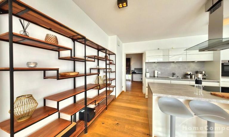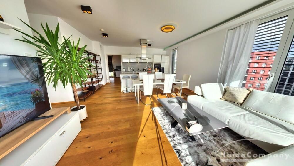 Eindrucksvolles Penthouse im Hafengoldprojekt von Offenbach, and der Grenze zu Frankfurt. Komplett hochwertig möbliert & ausgestattet.