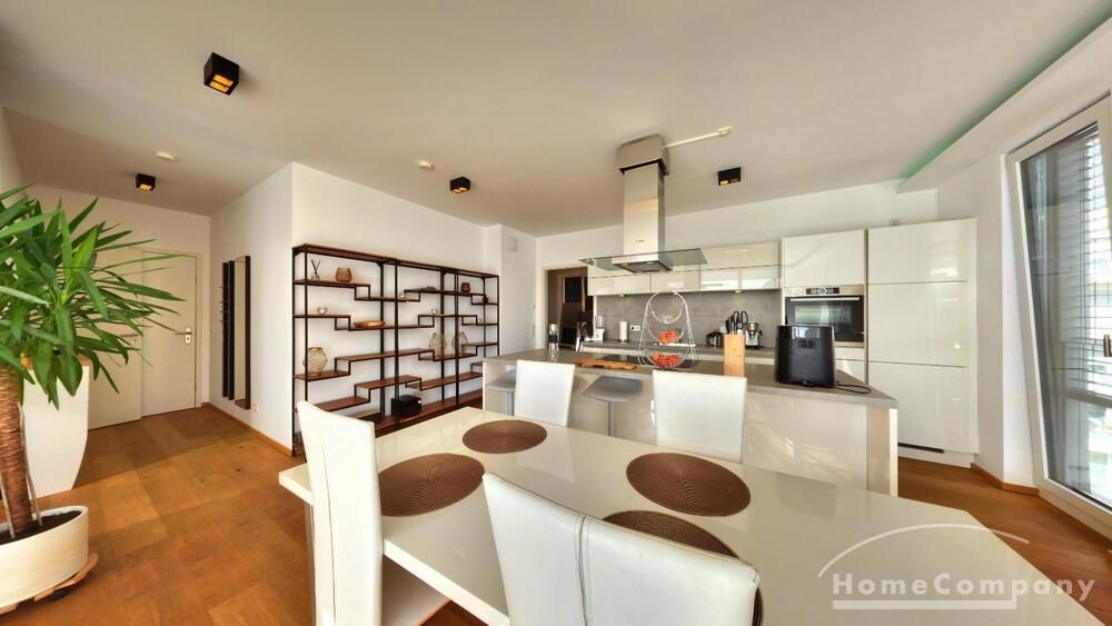 Eindrucksvolles Penthouse im Hafengoldprojekt von Offenbach, and der Grenze zu Frankfurt. Komplett hochwertig möbliert & ausgestattet. Ein Luxuriöser Whirlpool auf der Dachterrasse stellt ein weiteres Highlight dar.