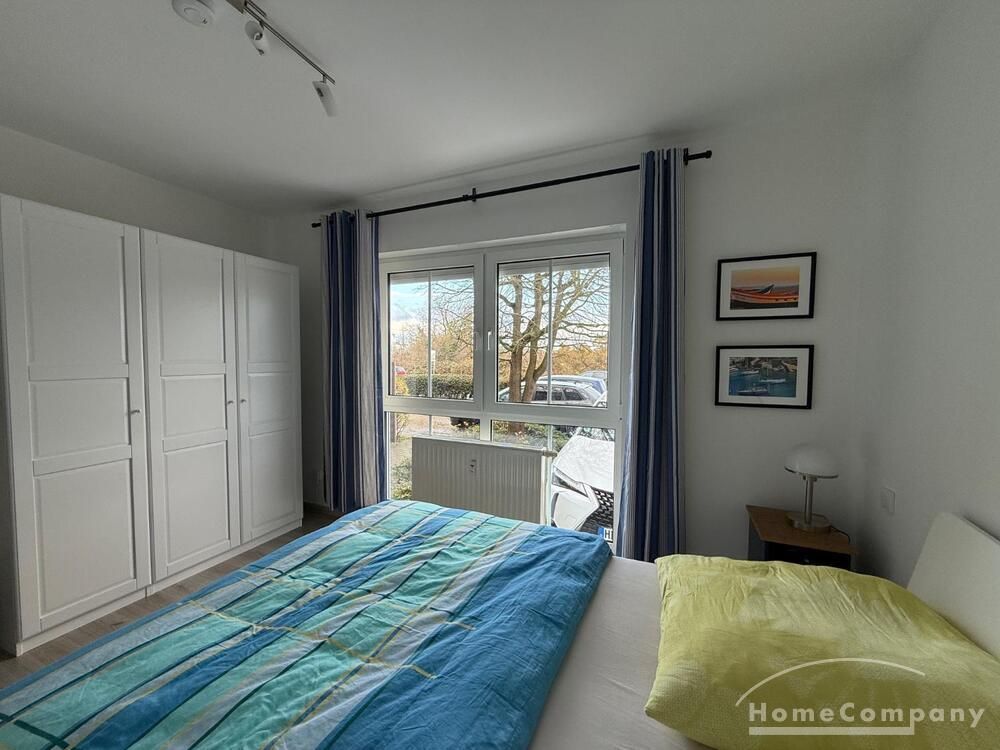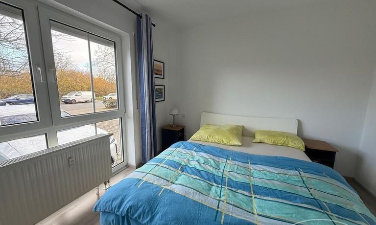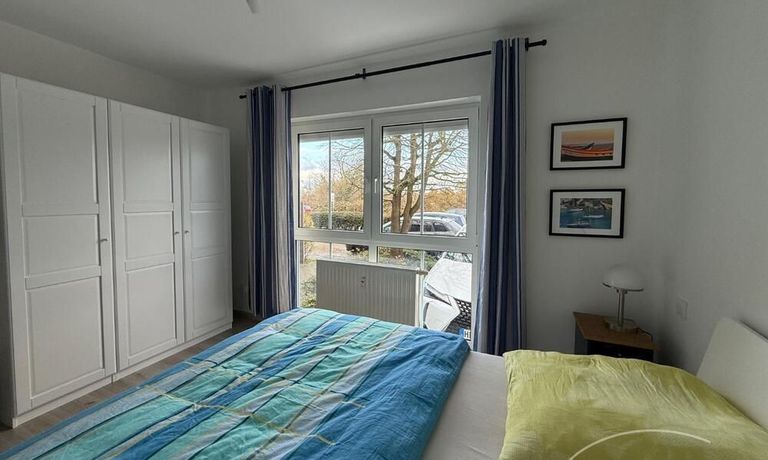 Schlafen: Doppelbett und großer Kleiderschrank