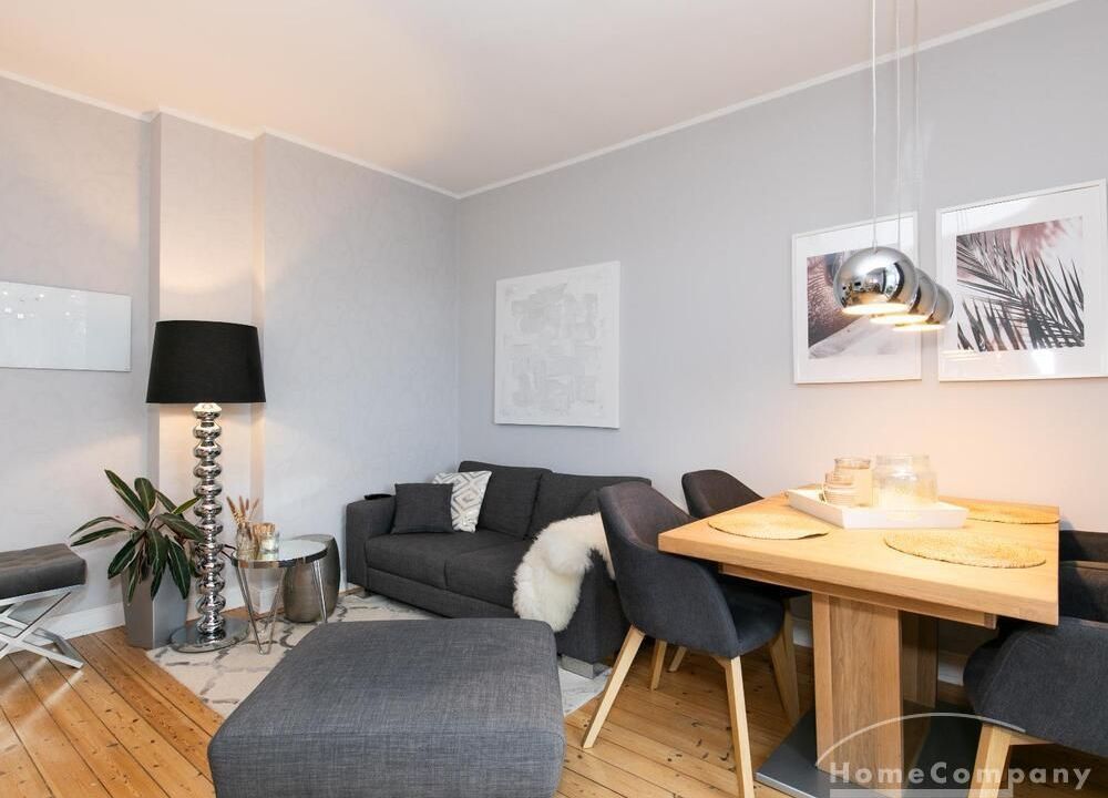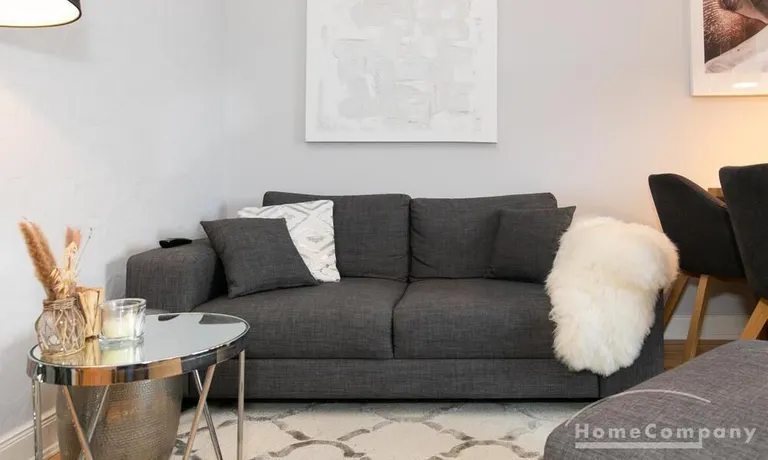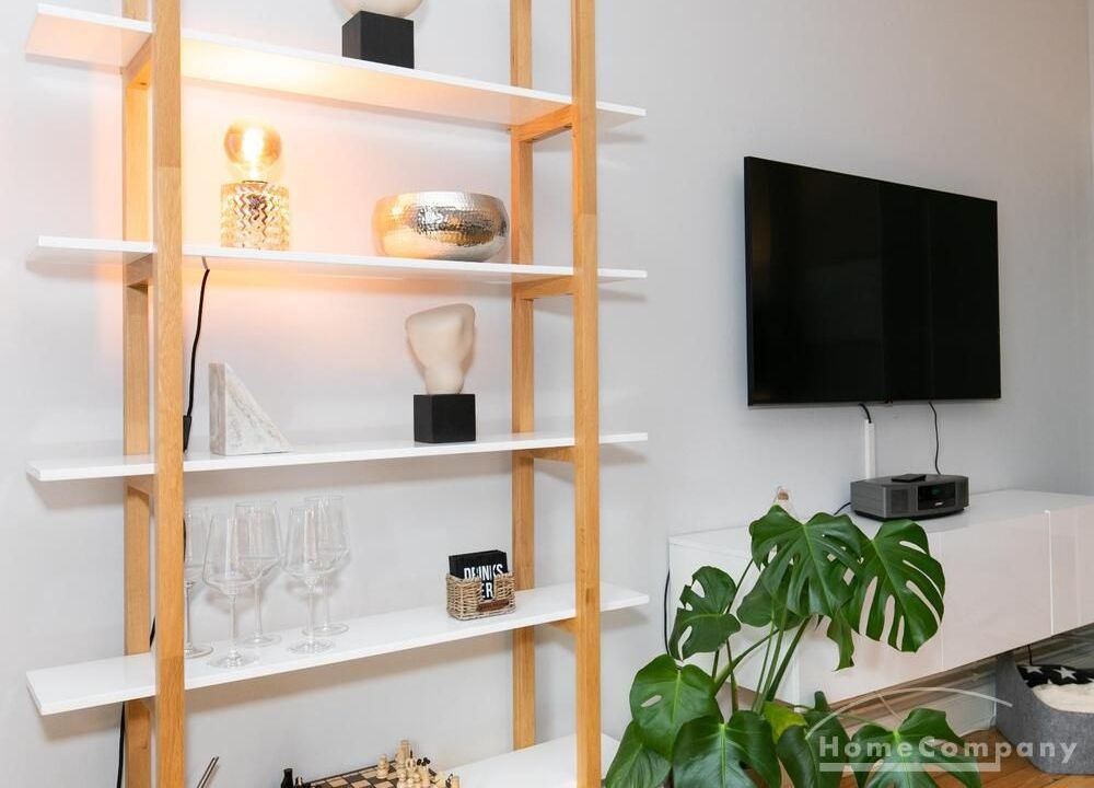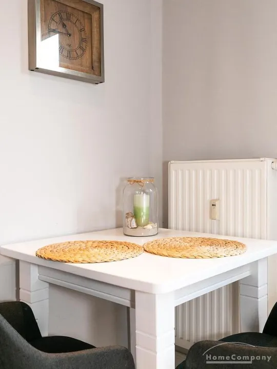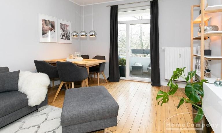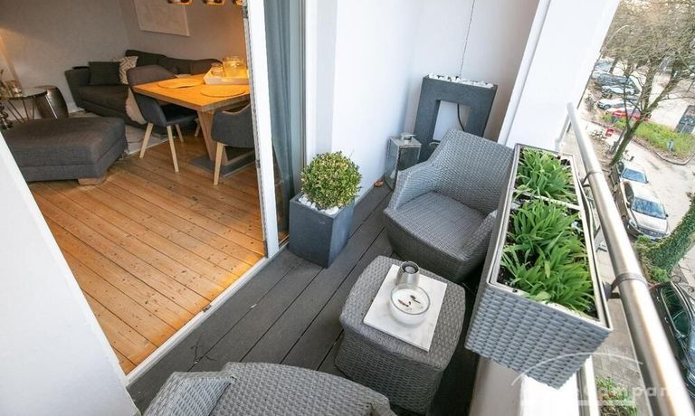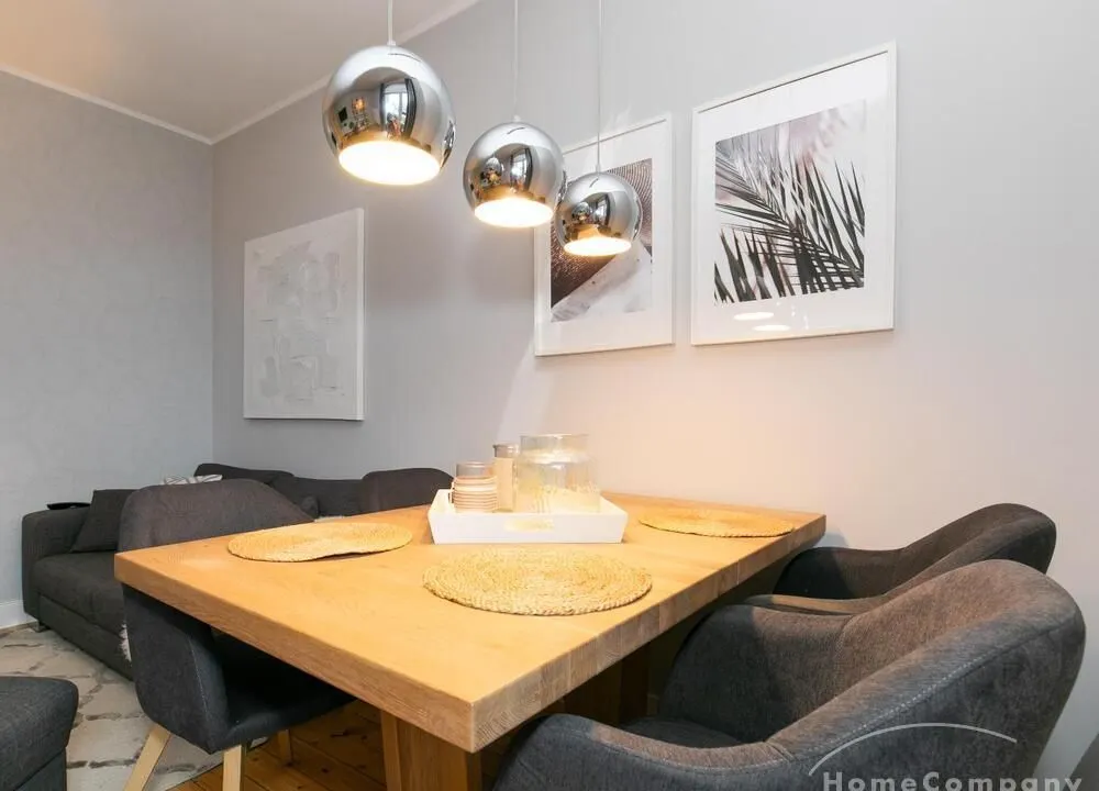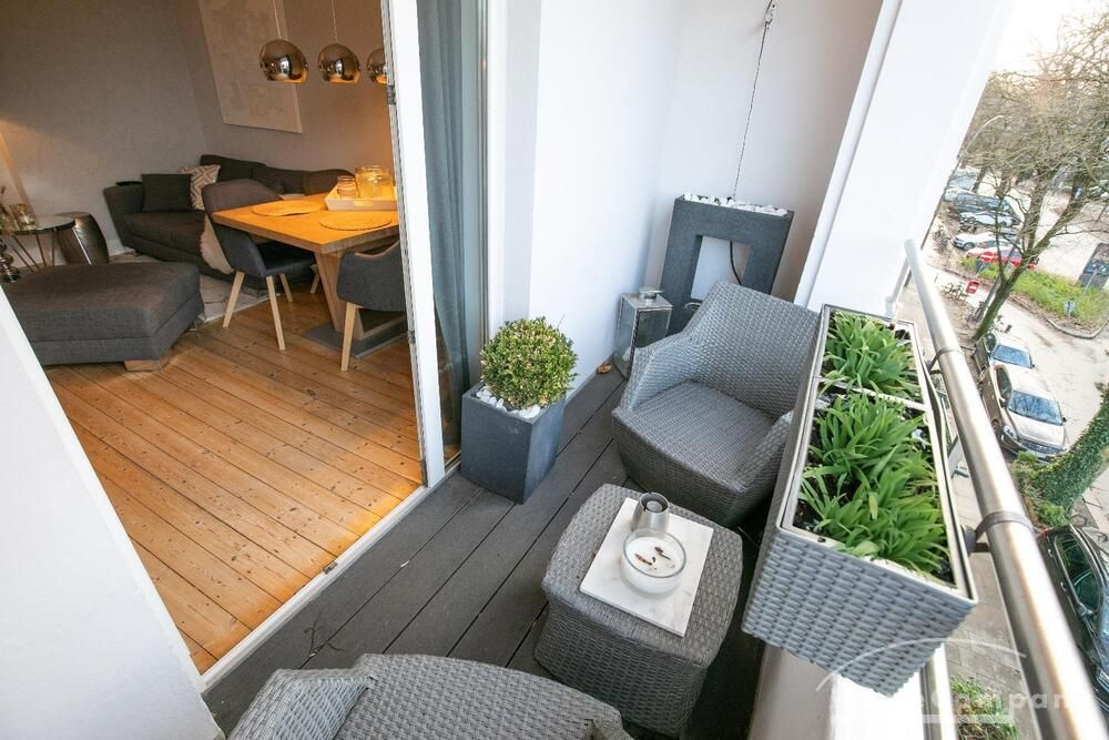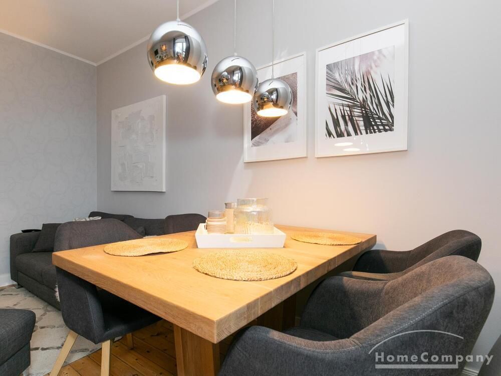 Perfekt ausgestattete Wohnung in einer guten Wohnlage in Winterhude. Die Wohnung ist modern in dezenten Farbtönen eingerichtet und geschmackvoll und schön dekoriert. Im Wohnzimmer steht ein Esstisch mit einer 4 cm dicken Eichenplatte für bis zu 4 Personen bereit. Vom Sofa aus blickt an auf den XXL-TV (Diagonal 1,67 m, Breite= 1,45m Höhe= 0,83 m,smart-TV fähig). Weiterhin steht ein einladender Balkon mit 2 kleinen Loungesesseln und einem Beistelltisch zur Verfügung. Das Schlafzimmer ist mit einem 1,60m breiten Doppelbett und reichlich Schrankfläche sowie einem TV ausgestattet.
