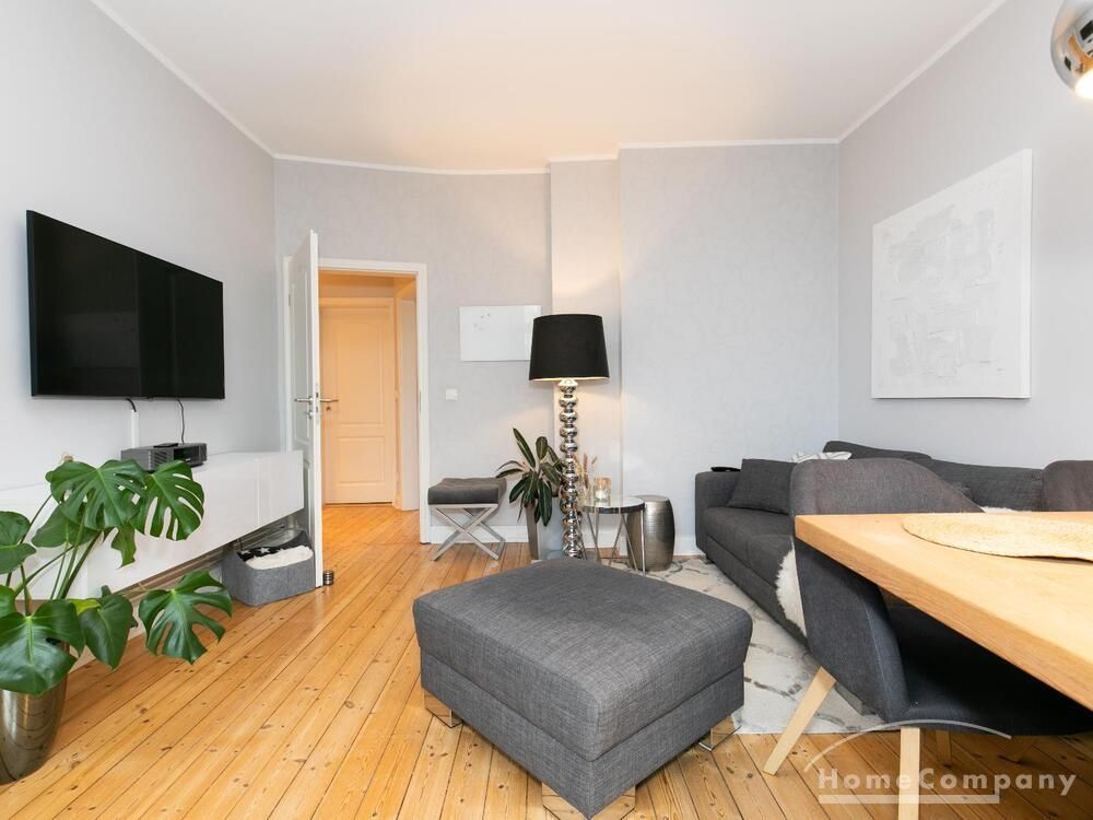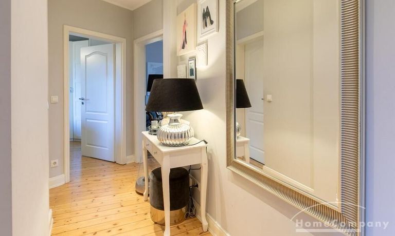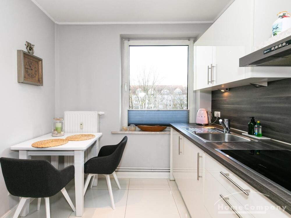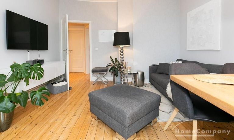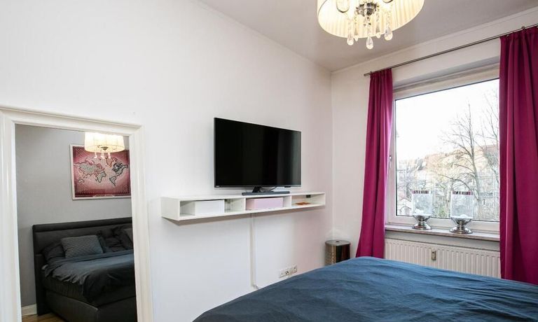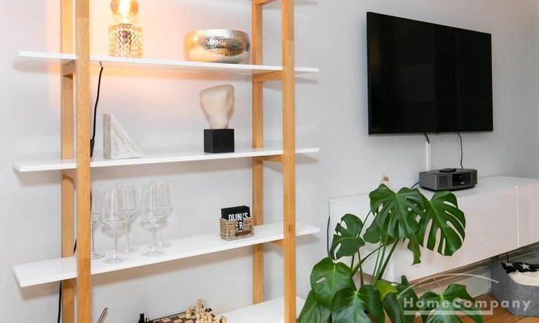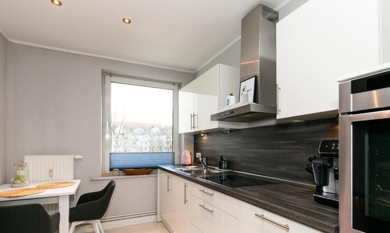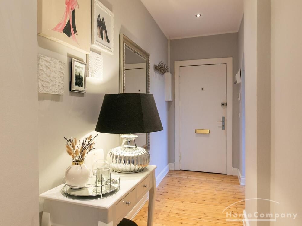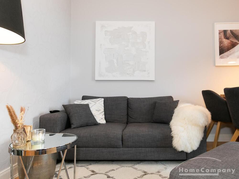 Perfekt ausgestattete Wohnung in einer guten Wohnlage in Winterhude. Die Wohnung ist modern in dezenten Farbtönen eingerichtet und geschmackvoll und schön dekoriert. Im Wohnzimmer steht ein Esstisch mit einer 4 cm dicken Eichenplatte für bis zu 4 Personen bereit. Vom Sofa aus blickt an auf den XXL-TV (Diagonal 1,67 m, Breite= 1,45m Höhe= 0,83 m,smart-TV fähig). Weiterhin steht ein einladender Balkon mit 2 kleinen Loungesesseln und einem Beistelltisch zur Verfügung. Das Schlafzimmer ist mit einem 1,60m breiten Doppelbett und reichlich Schrankfläche sowie einem TV ausgestattet.