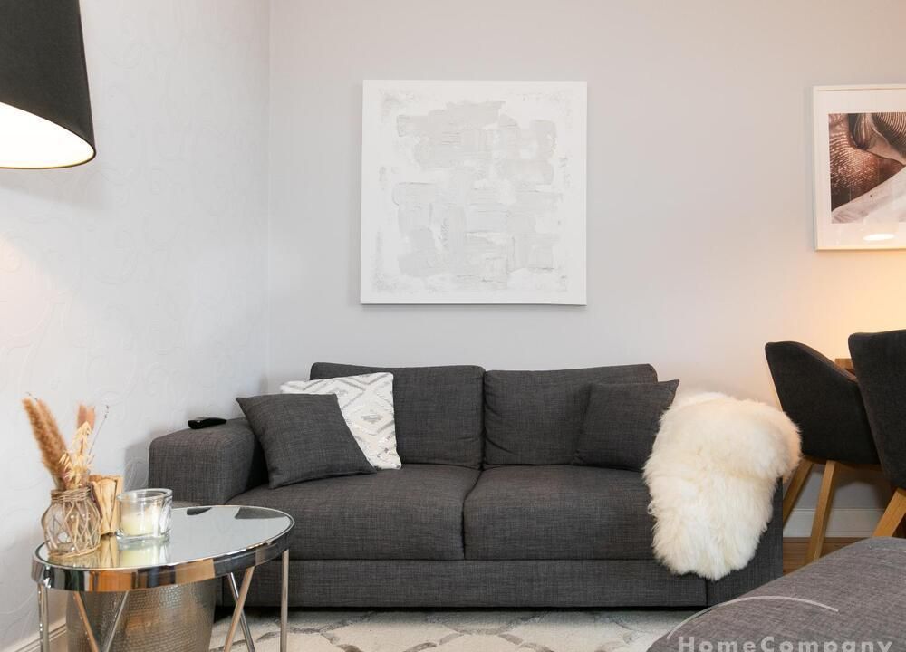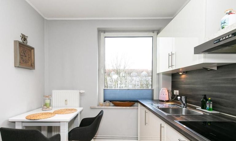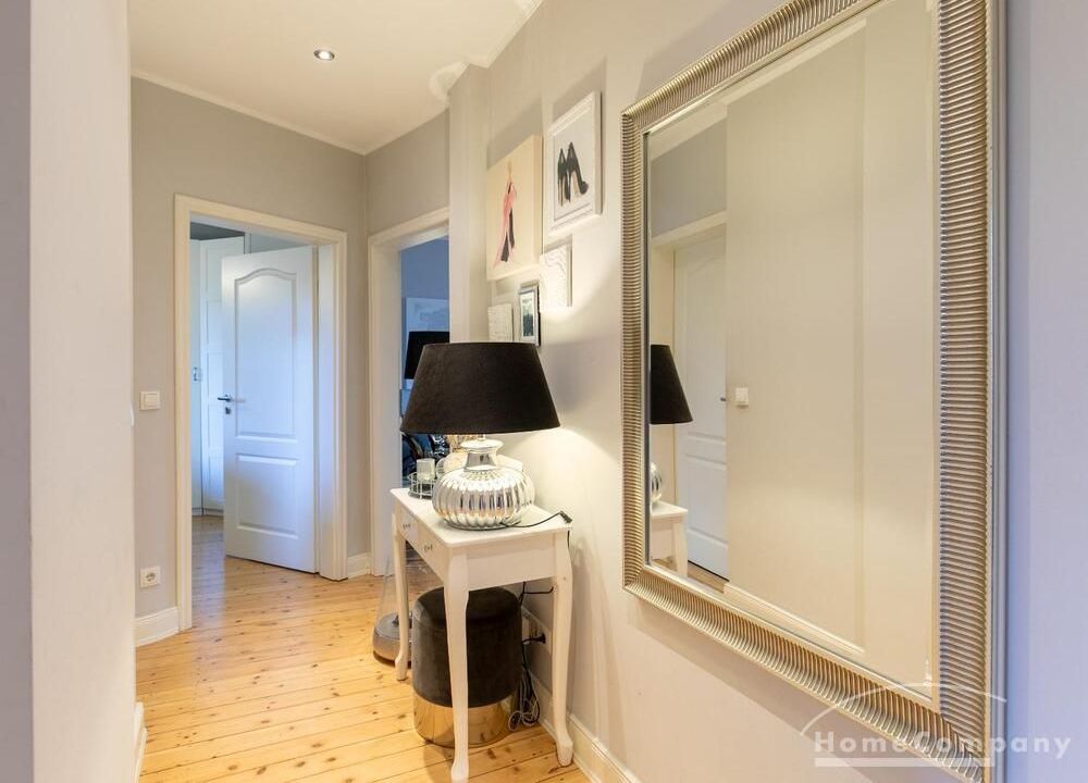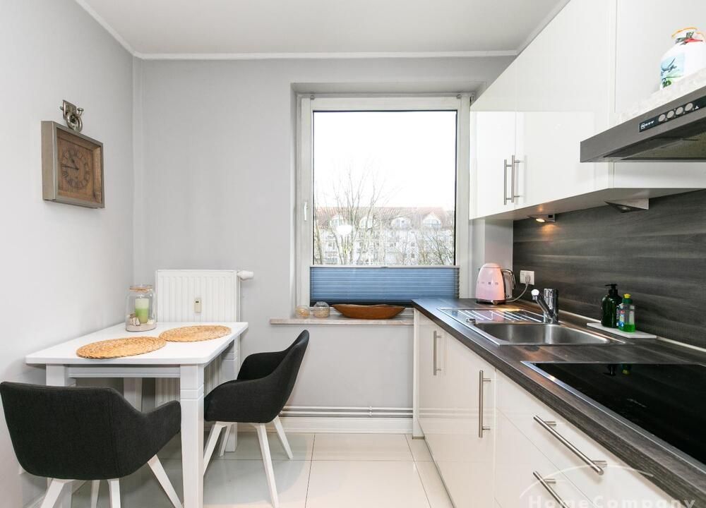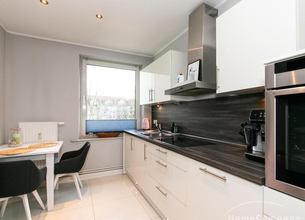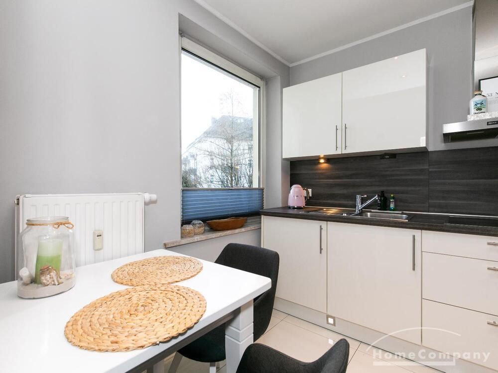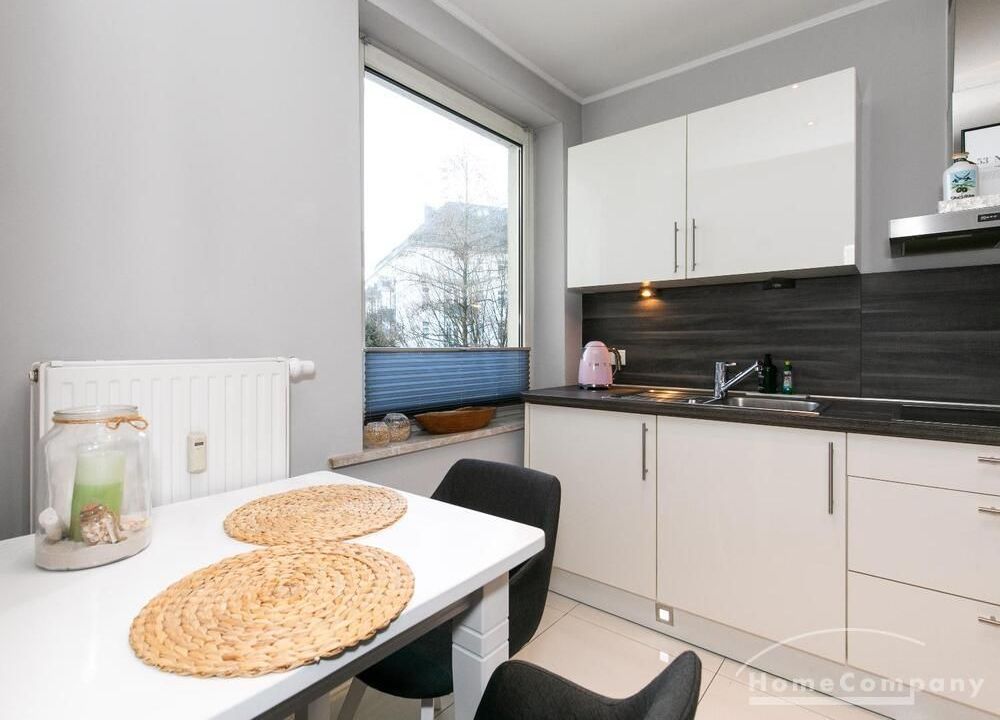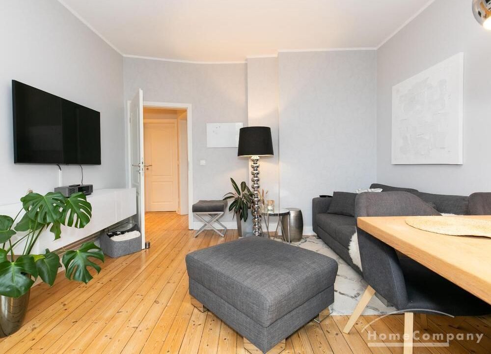 Perfekt ausgestattete Wohnung in einer guten Wohnlage in Winterhude. Die Wohnung ist modern in dezenten Farbtönen eingerichtet und geschmackvoll und schön dekoriert. Im Wohnzimmer steht ein Esstisch mit einer 4 cm dicken Eichenplatte für bis zu 4 Personen bereit. Vom Sofa aus blickt an auf den XXL-TV (Diagonal 1,67 m, Breite= 1,45m Höhe= 0,83 m,smart-TV fähig). Weiterhin steht ein einladender Balkon mit 2 kleinen Loungesesseln und einem Beistelltisch zur Verfügung. Das Schlafzimmer ist mit einem 1,60m breiten Doppelbett und reichlich Schrankfläche sowie einem TV ausgestattet.