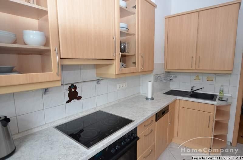 Schlafzimmer mit 1,40 x 2,00 Meter Bett mit zwei neuen Lattenrosten und einer neuen Kaltschaummatratze. Ein Kleiderschrank ist selbstverständlich auch dabei. Die Möbel sind in Buche gehalten. Das Schlafzimmer liegt zu einem großen ruhigen Grünkarree und man hört absolut keinen Straßenlärm. Kissen, Bettdecken sowie Bezüge sind inklusive. Neuwertige Einbauküche mit Kühlschrank inkl. kleinem Gefrierfach, Cerankochfeld, Backofen mit Umluft, Mikrowelle, Geschirrspüler, Dunstabzughaube, Spüle, Tisch, Stühle, diverse Kleinelektroteile (Kaffeemaschine, Toaster, Wasserkocher, Eierkocher, Eieruhr,…) sowie natürlich komplette Bestückung an Besteck etc.. Duschbad. Waschmaschine im Keller zur Mitbenutzung. Angaben lt. Anbieter
