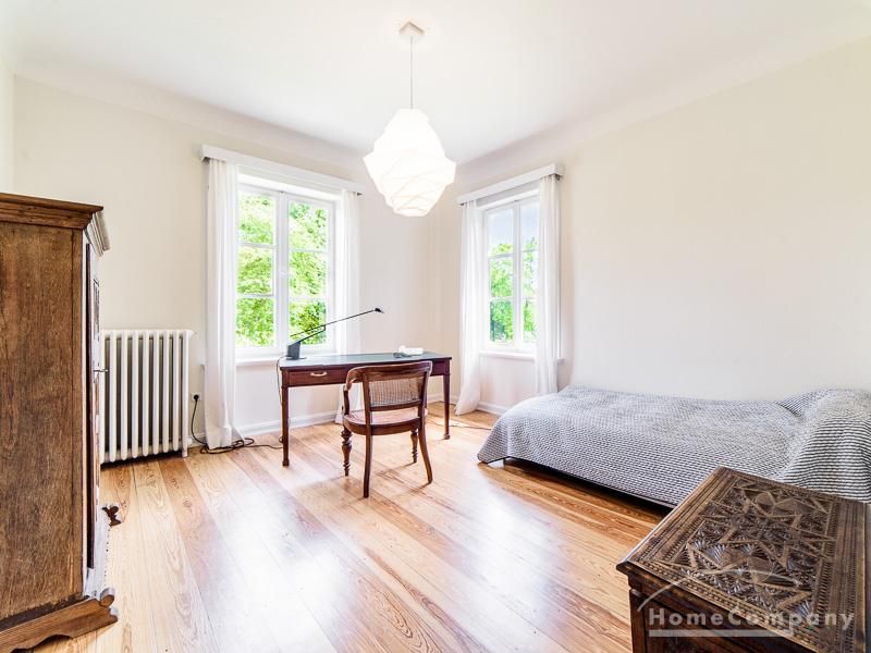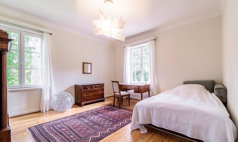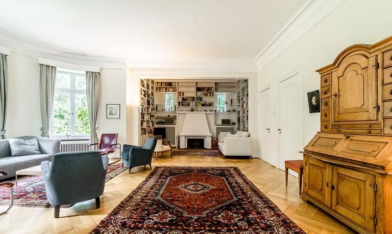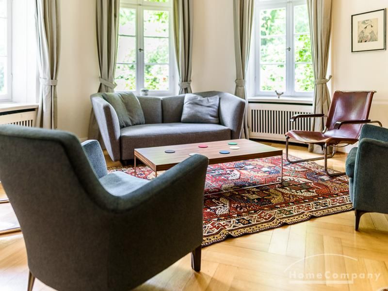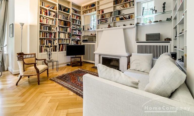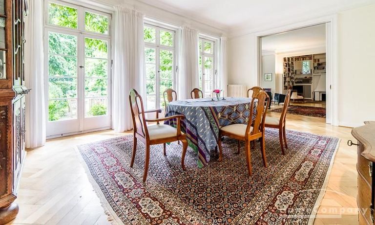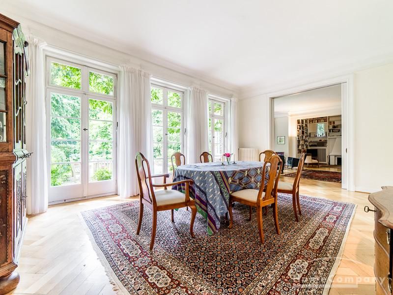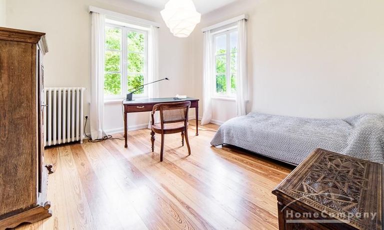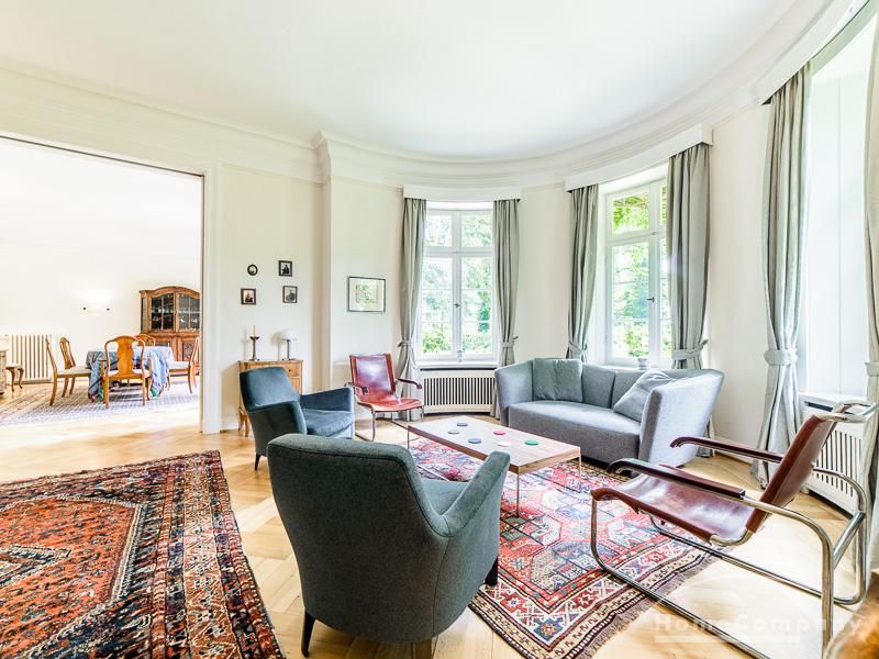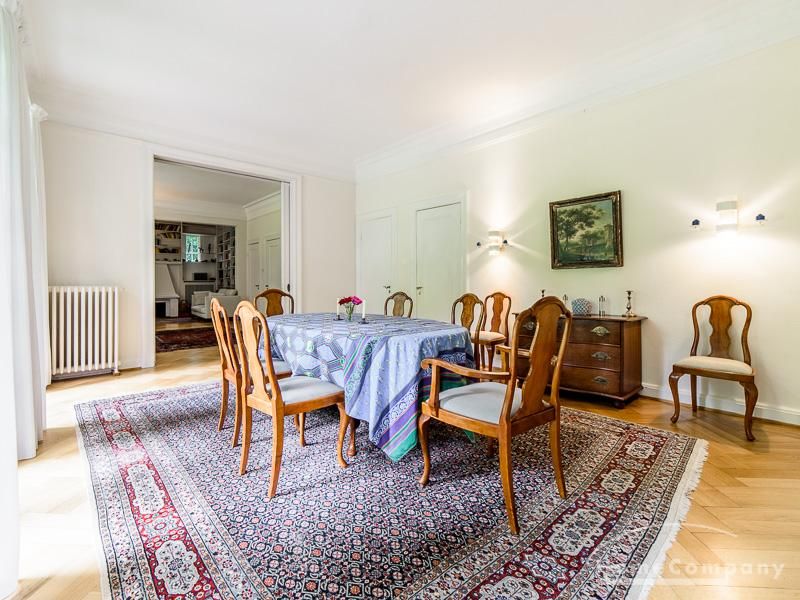 Repräsentative Villa mit einem idyllischen Garten mit weitläufigen Rasenflächen und großer Terrasse. Über den repräsentativen Eingangsbereich gelangt man in das schön eingerichtete Wohn und Esszimmer. Vom Essbereich blickt man durch bodentiefe Fenster in den wunderschönen Garten. In einem runden Erker steht eine kleine Sitzgruppe zur Verfügung. Der Kaminbereich bietet eine gemütliche Atmosphäre. Zusätzlich steht im Erdgeschoss ein Arbeitszimmer zur Verfügung. Ein schön gestalteter Treppenaufgang führt ins Obergeschoss, in dem sich vier Schlafzimmer und ein weiteres Büro befinden. Waschmaschine, Wäschetrockner und WLAN sind vorhanden. Auf dem Grundstück steht eine Garage zur Verfügung. Miete inklusive Gärtner und Telefon / DSL und eine Countryflat Europa/USA. Verbrauchsabhängige Telefonkosten, die nicht in der flatrate enthalten sind werden nach Verbrauch berechnet. Die Internationale Schule ist ca. 2, 5km entfernt.