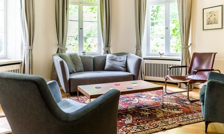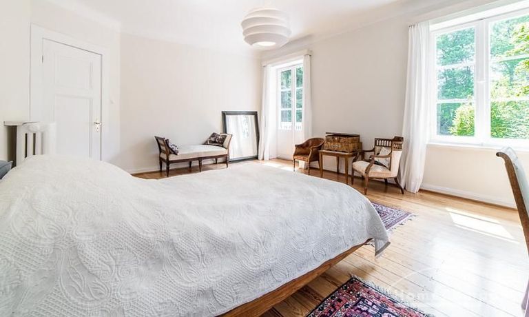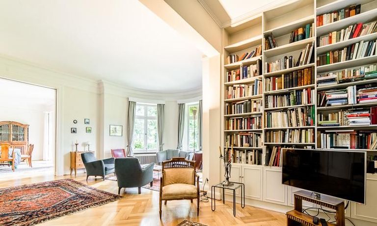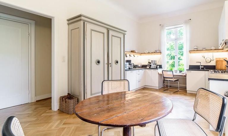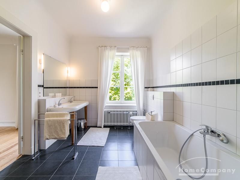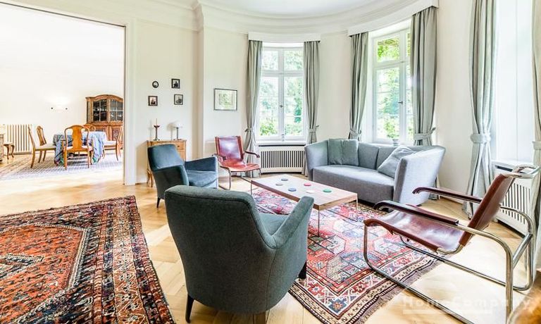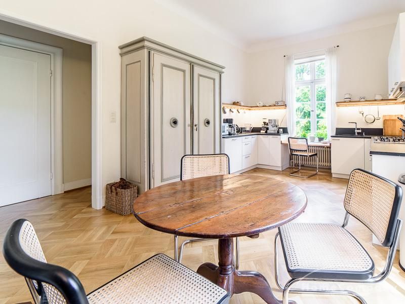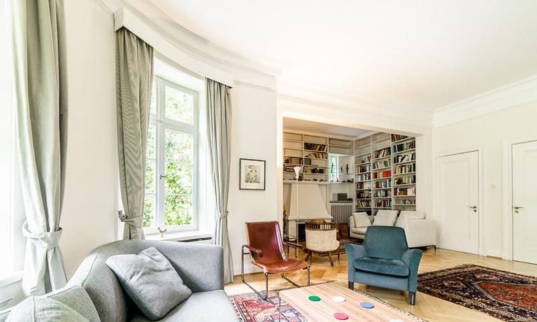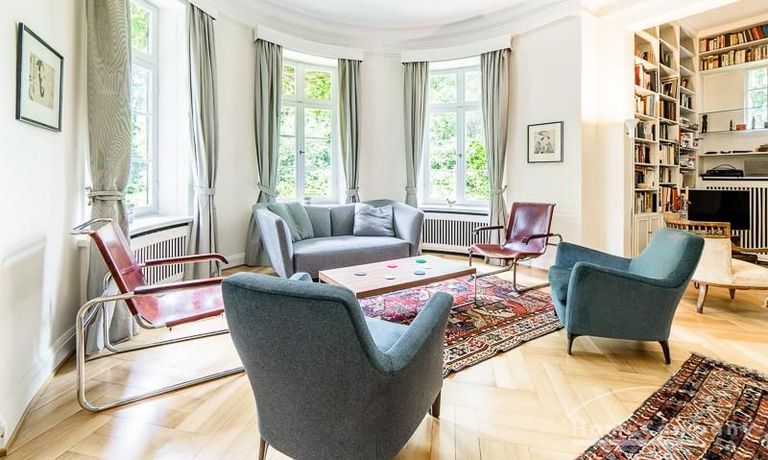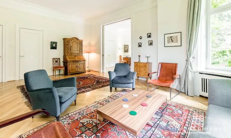 Repräsentative Villa mit einem idyllischen Garten mit weitläufigen Rasenflächen und großer Terrasse. Über den repräsentativen Eingangsbereich gelangt man in das schön eingerichtete Wohn und Esszimmer. Vom Essbereich blickt man durch bodentiefe Fenster in den wunderschönen Garten. In einem runden Erker steht eine kleine Sitzgruppe zur Verfügung. Der Kaminbereich bietet eine gemütliche Atmosphäre. Zusätzlich steht im Erdgeschoss ein Arbeitszimmer zur Verfügung. Ein schön gestalteter Treppenaufgang führt ins Obergeschoss, in dem sich vier Schlafzimmer und ein weiteres Büro befinden. Waschmaschine, Wäschetrockner und WLAN sind vorhanden. Auf dem Grundstück steht eine Garage zur Verfügung. Miete inklusive Gärtner und Telefon / DSL und eine Countryflat Europa/USA. Verbrauchsabhängige Telefonkosten, die nicht in der flatrate enthalten sind werden nach Verbrauch berechnet. Die Internationale Schule ist ca. 2, 5km entfernt.