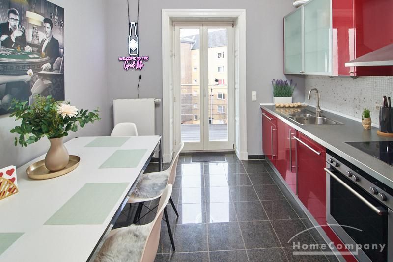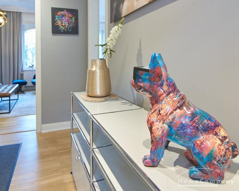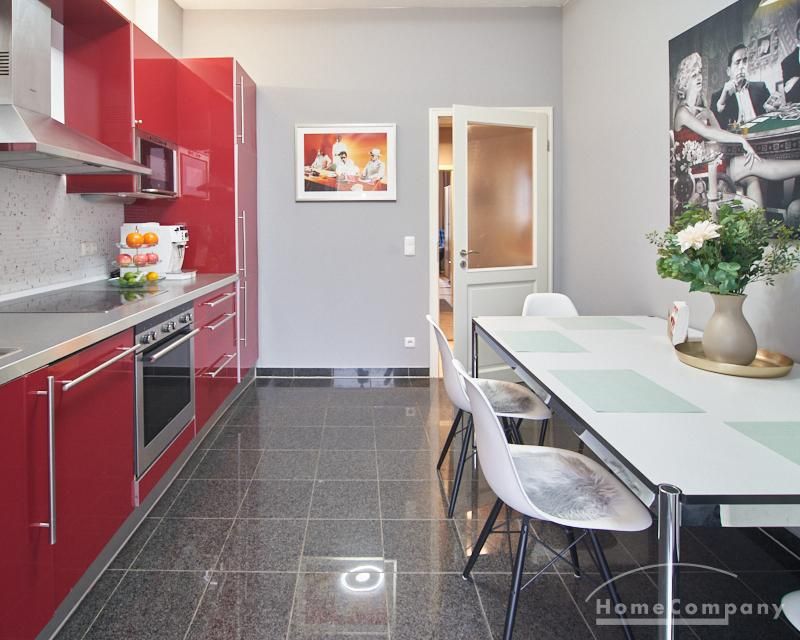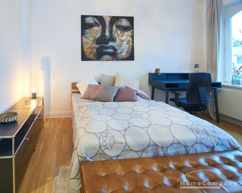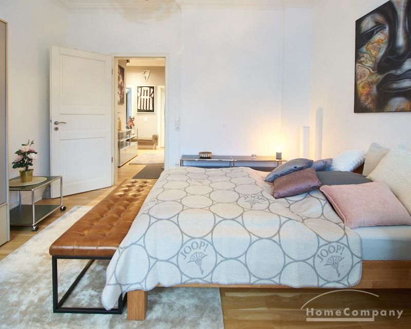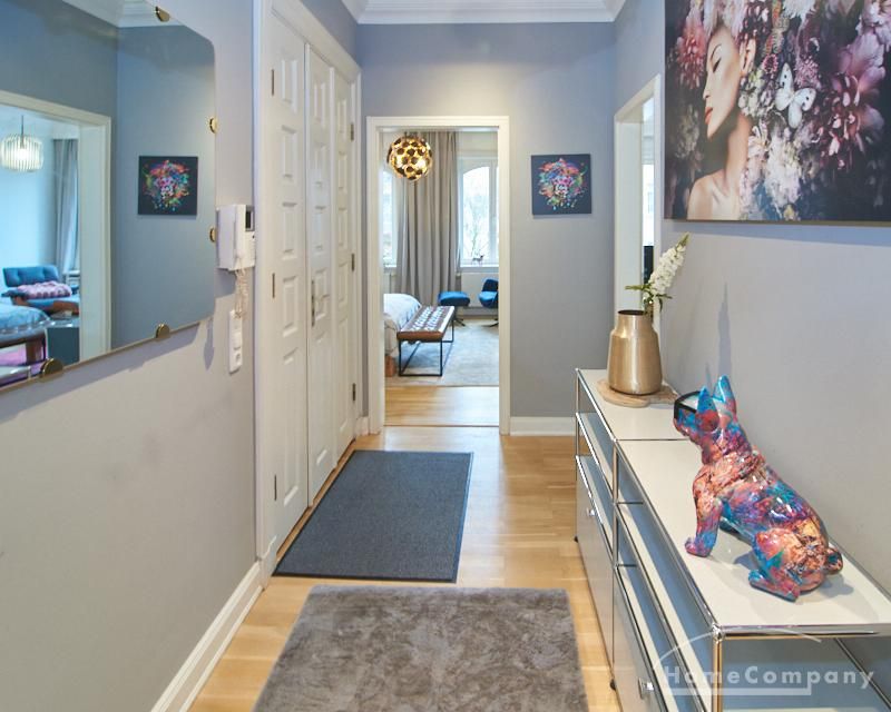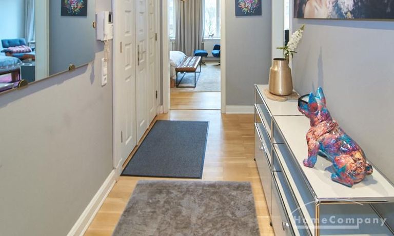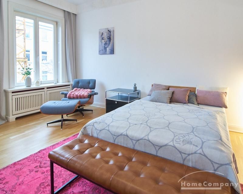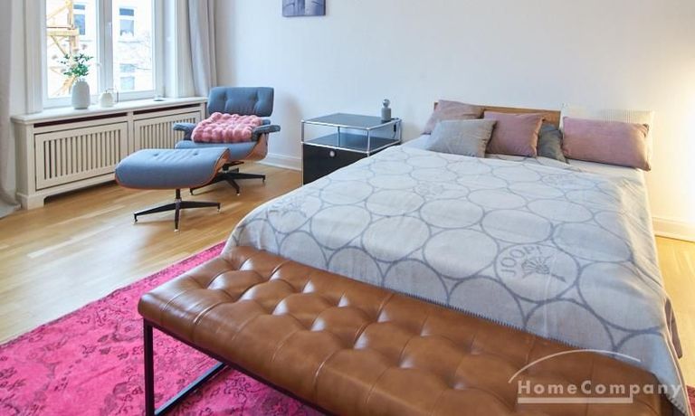 Repräsentatives Altbauapartment in zentraler Lage von St. Pauli. Das sanierte, denkmalgeschützte Gebäude bietet klassische Altbaudetails wie Stuck, hohe Decken von etwa drei Metern und einen neu verlegten Parkettboden. Die Wohnung ist vollständig neu möbliert, unter anderem mit Designermöbeln von USM Haller und Vitra.
