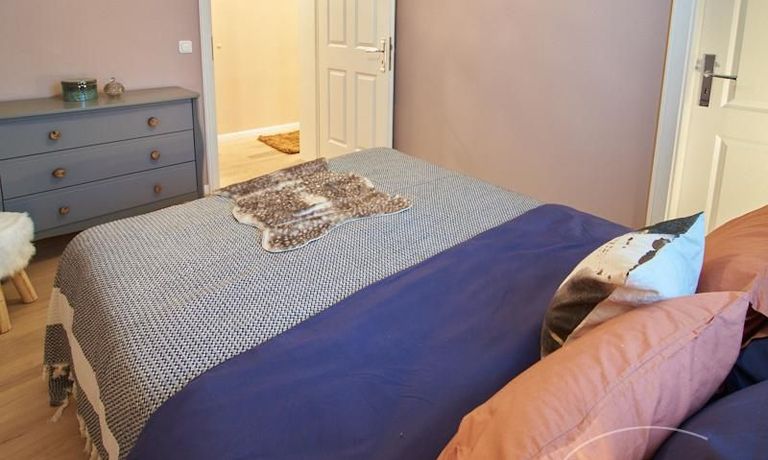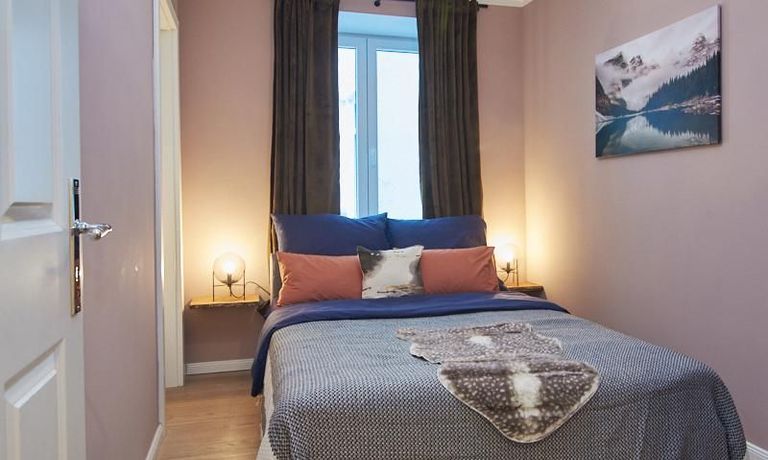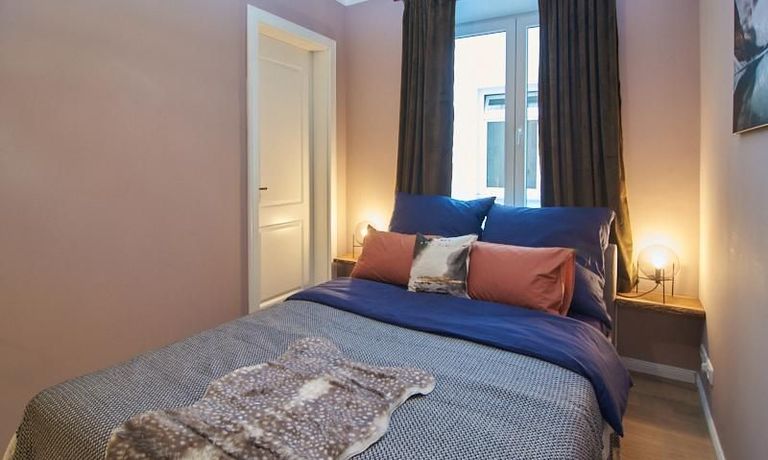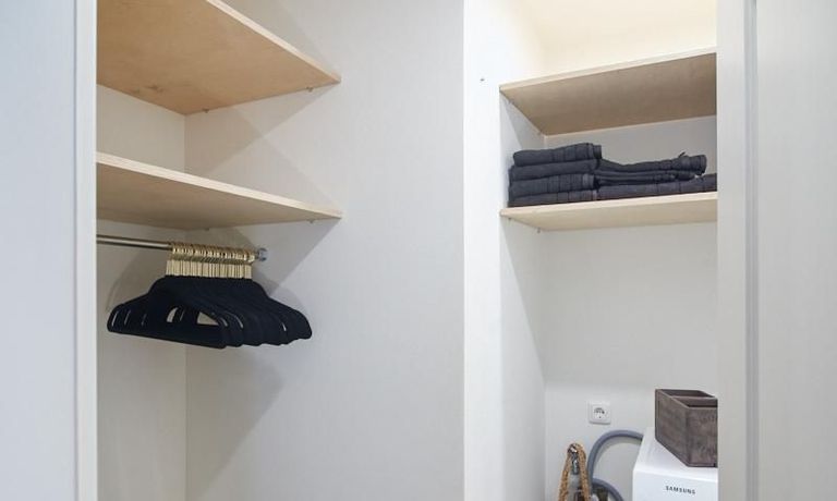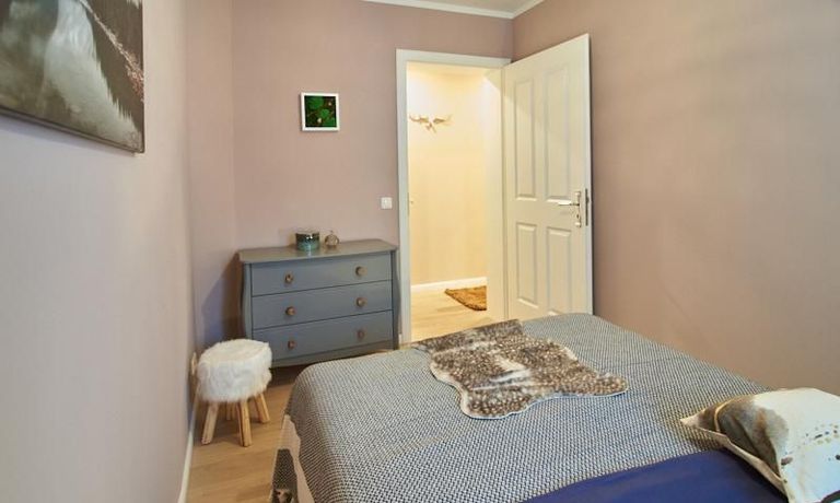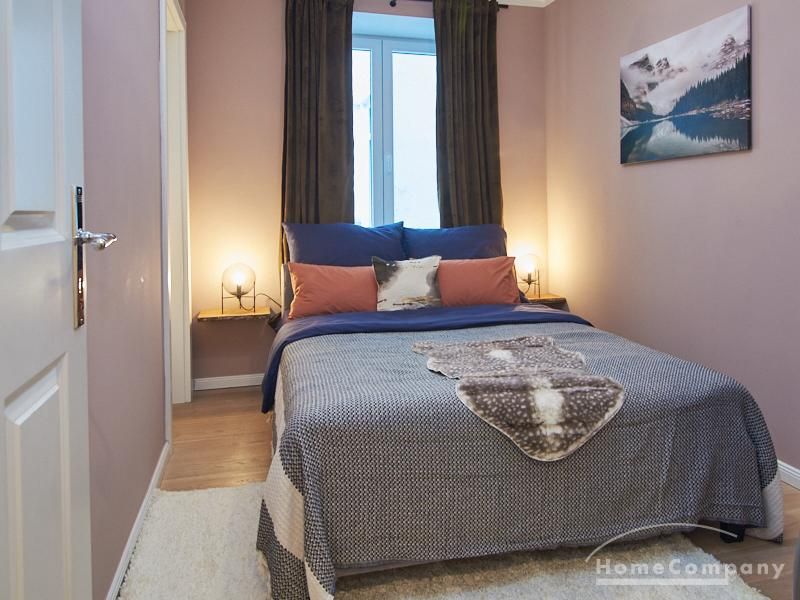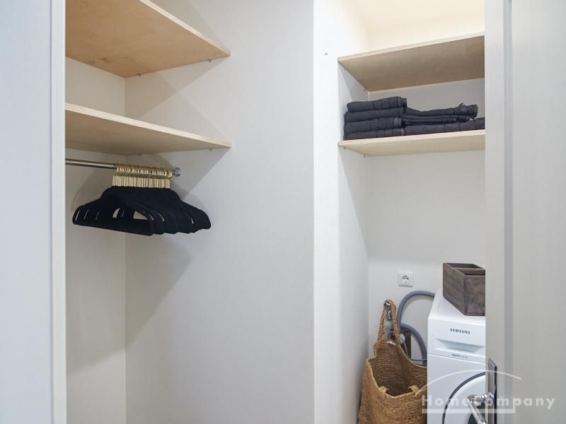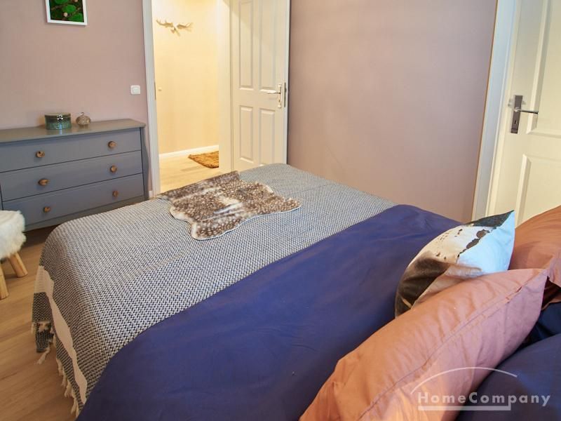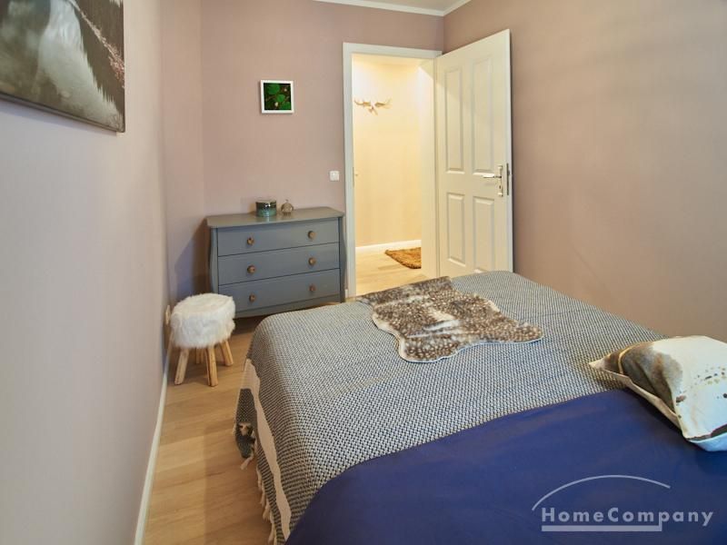 Im Schlafzimmer steht ein 1,40 breites Bett zur Verfügung. Direkt angrenzend befindet sich ein begehbarer Kleiderschrank. Dort ist, in einer separaten Nische auch die Waschmaschine aufgestellt.