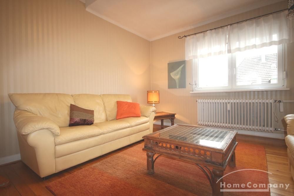 Diese 3 ZiKB-Dachgeschosswohnung, teils mit antiken Möbeln eingerichtet, Wohnzimmer, Schlafzimmer mit Bett 1,40 m breit und Arbeitszimmer verfügt über ca. 75 m² Wohnfläche. Die Wohnküche ist mit einer Einbauküche, Kühlschrank, Geschirrspüler, Herd, Geschirr etc. ausgestattet. Im Tageslichtbad befindet sich eine Badewanne. Zum Entspannen darf der Garten gerne mit genutzt werden.