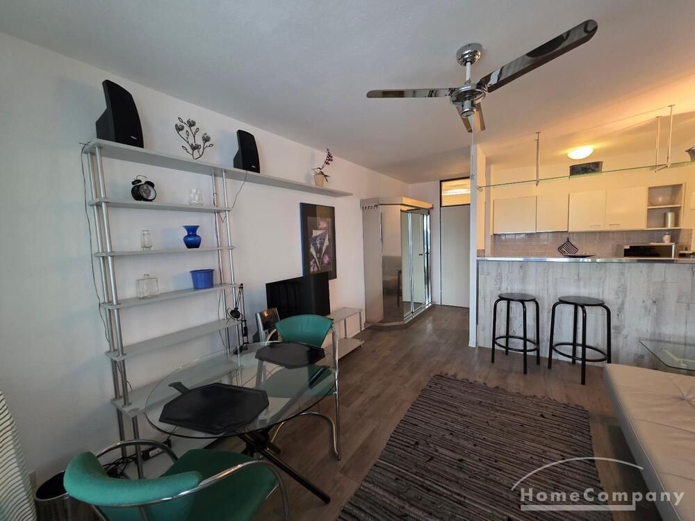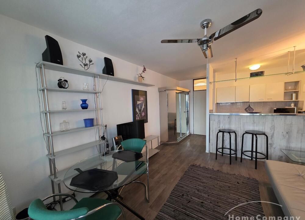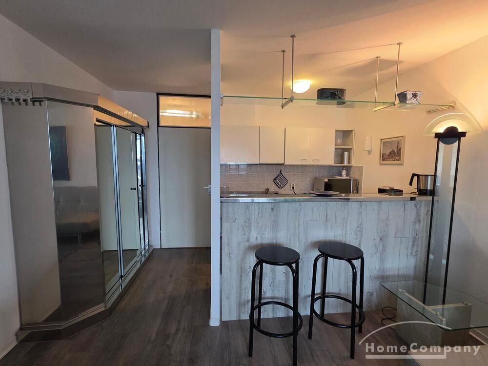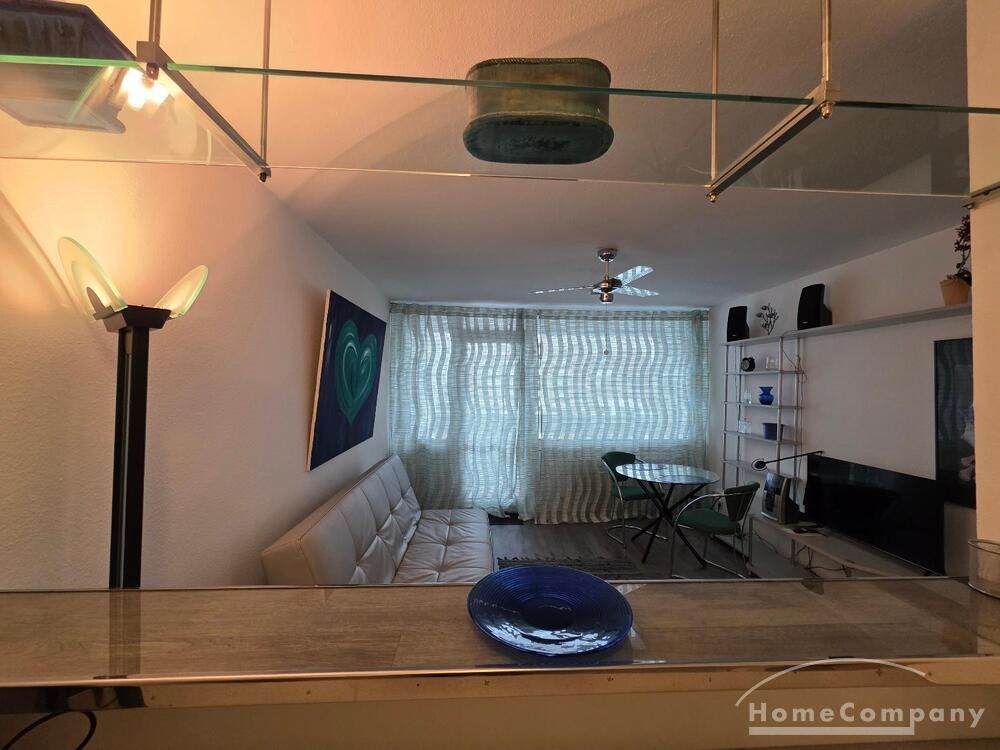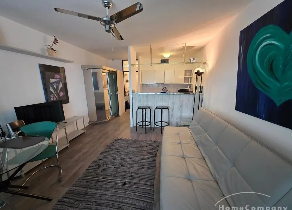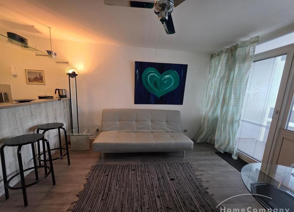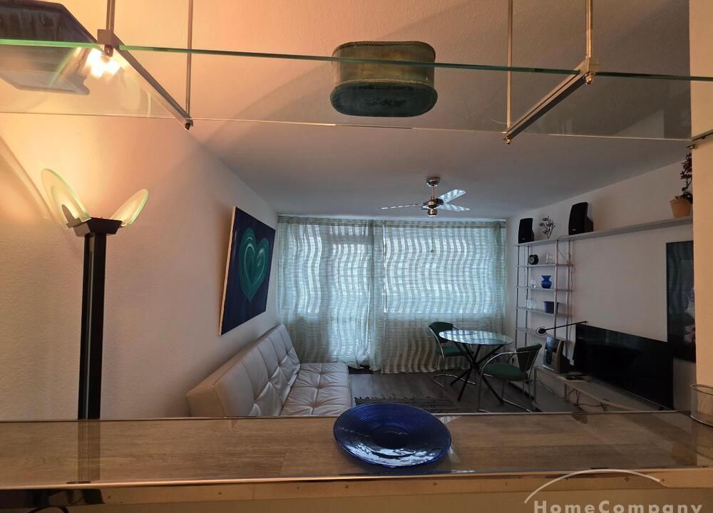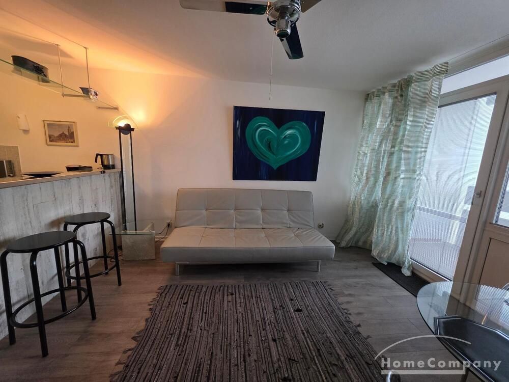 Die Wohnung ist modern möbliert, renoviert und komplett ausgestattet. Süd-Westbalkon mit sehr schöner Sicht auf die City von Frankfurt.