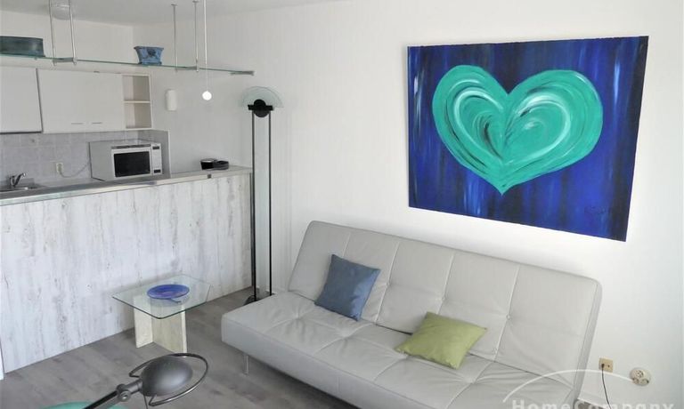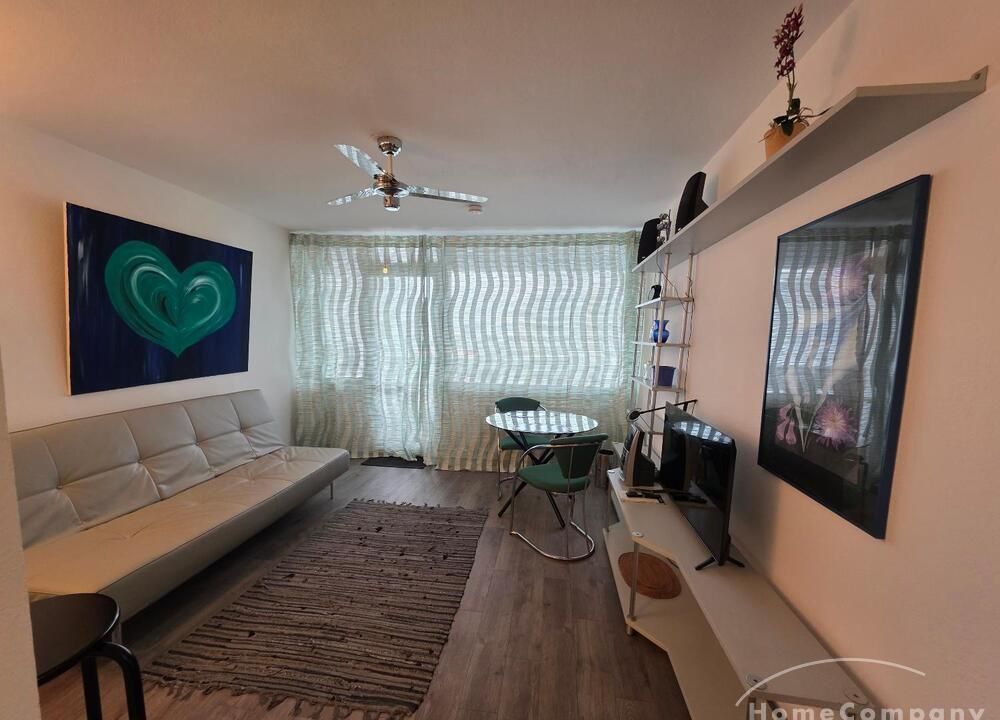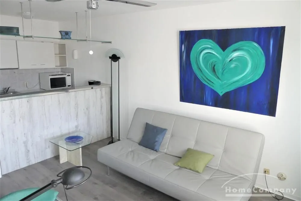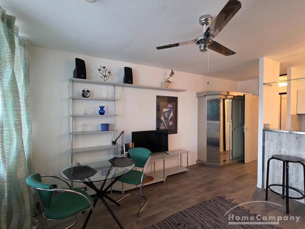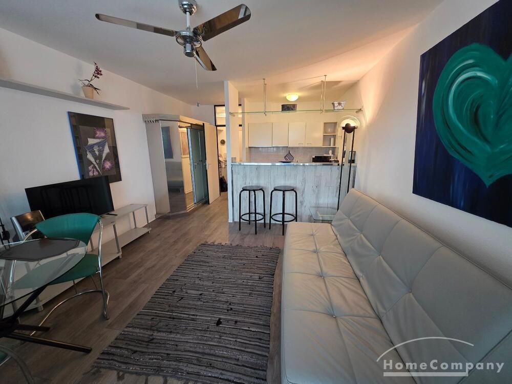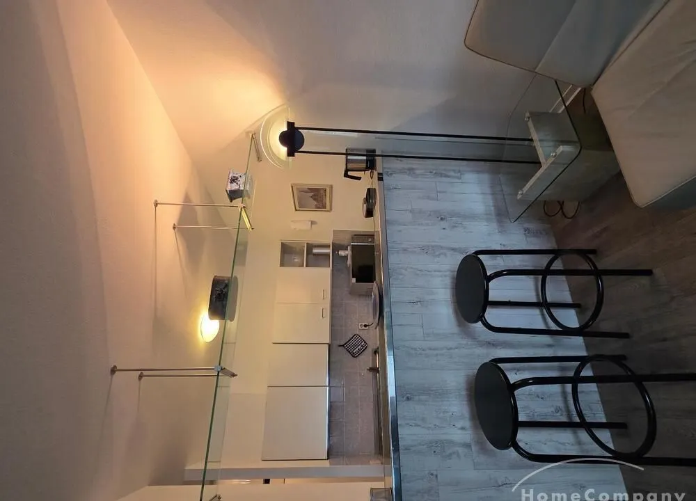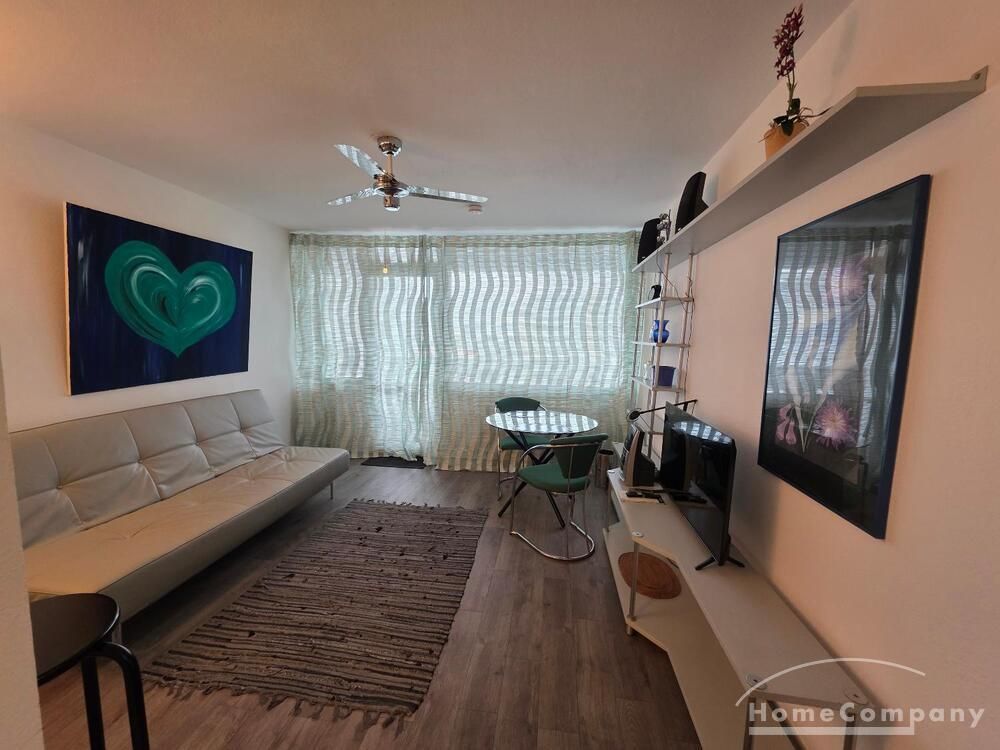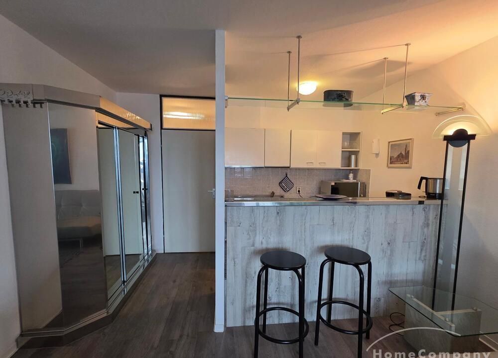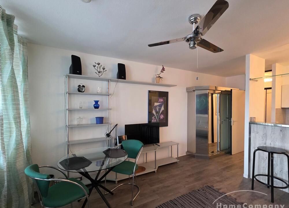 Die Wohnung ist modern möbliert, renoviert und komplett ausgestattet. Süd-Westbalkon mit sehr schöner Sicht auf die City von Frankfurt.
