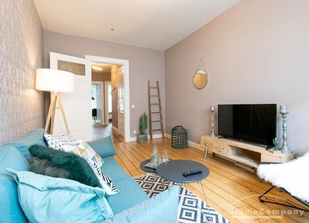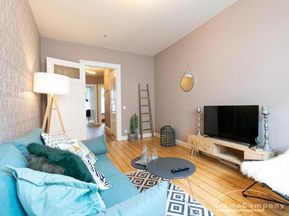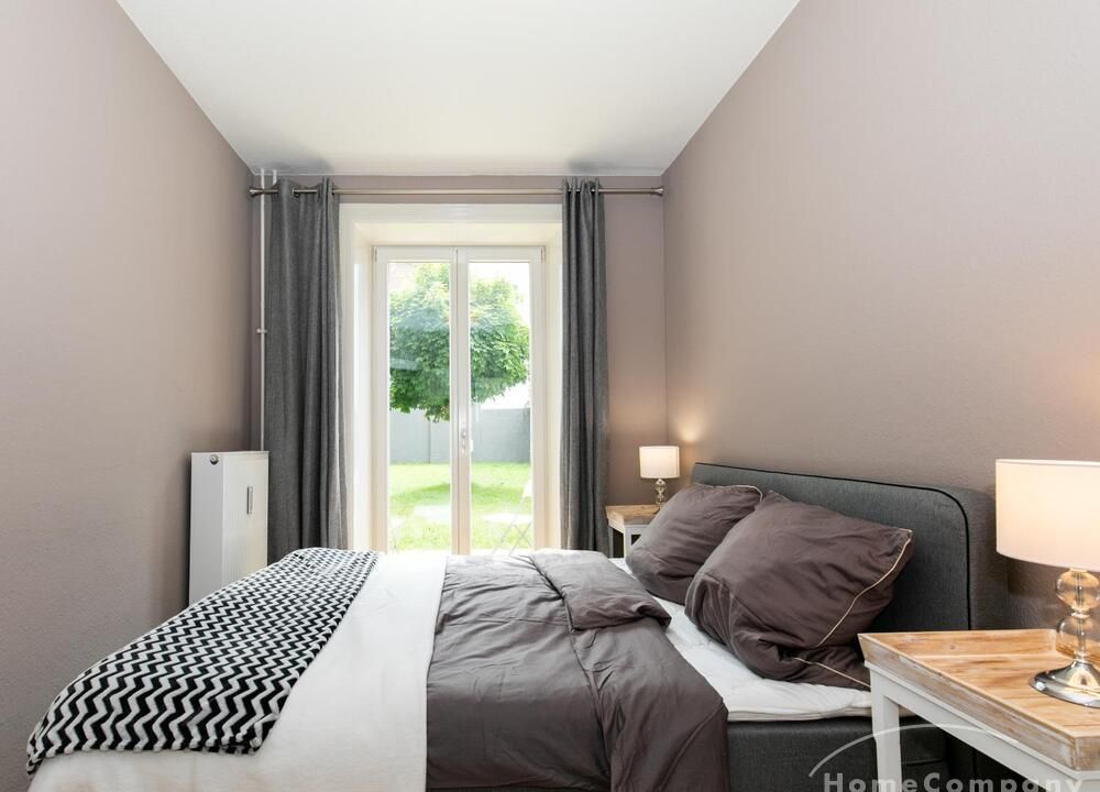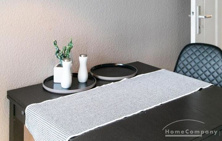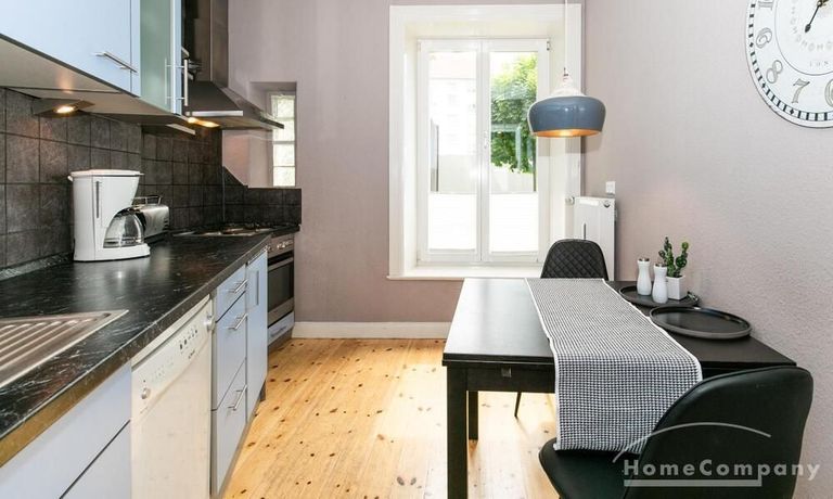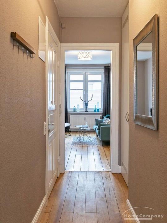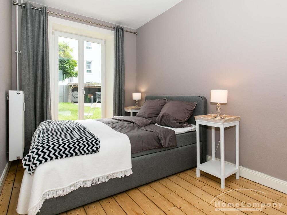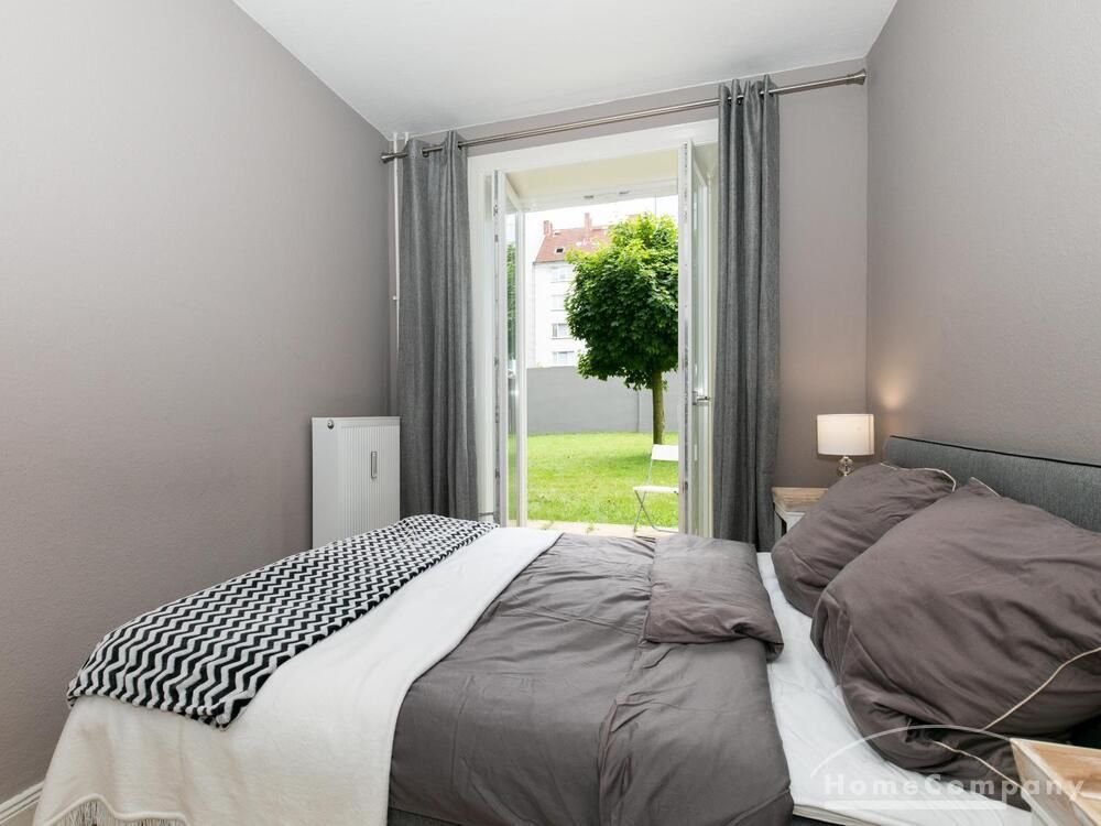 Schöne Erdgeschosswohnung in ruhiger zentraler Lage zwischen Messe und Universität. Die Wohnung verfügt über eine gut ausgestattete Wohnküche mit bodentiefem Fenster zum ruhigen Hinterhof. Auch das Schlafzimmer mit 1,60 breitem Bett ist nach hinten orientiert. Im Wohnzimmer steht ein gemütliches Sofa, Couchtisch, Sideboard und ein flatscreen-TV zur Verfügung.