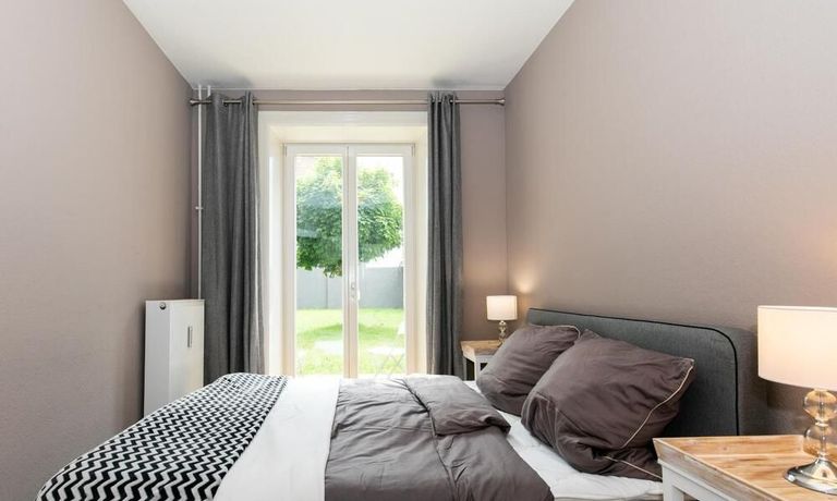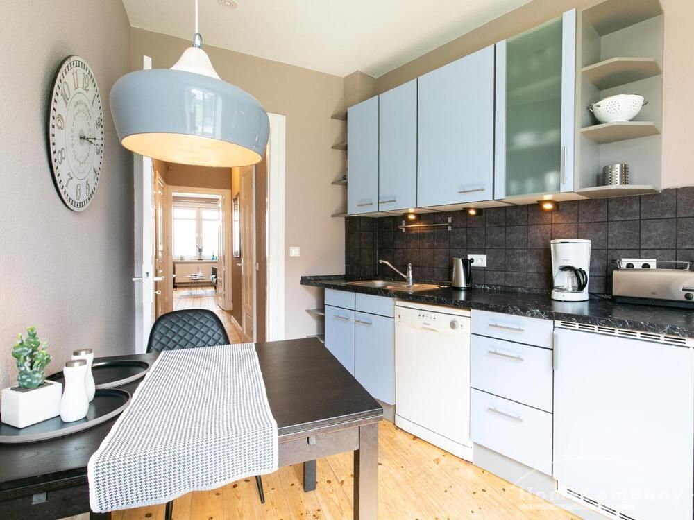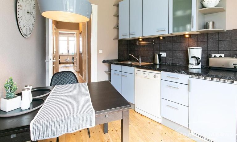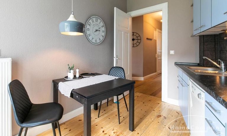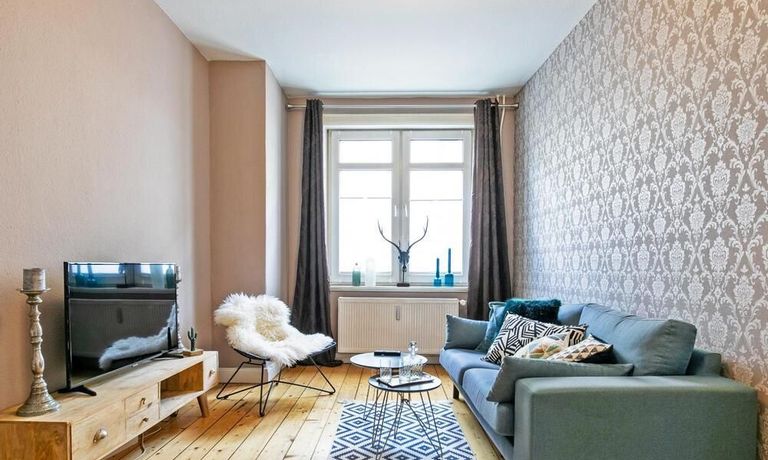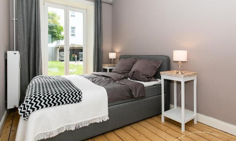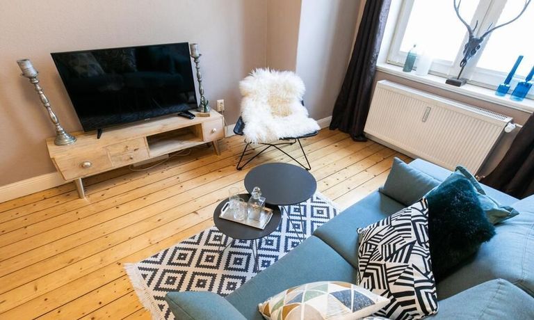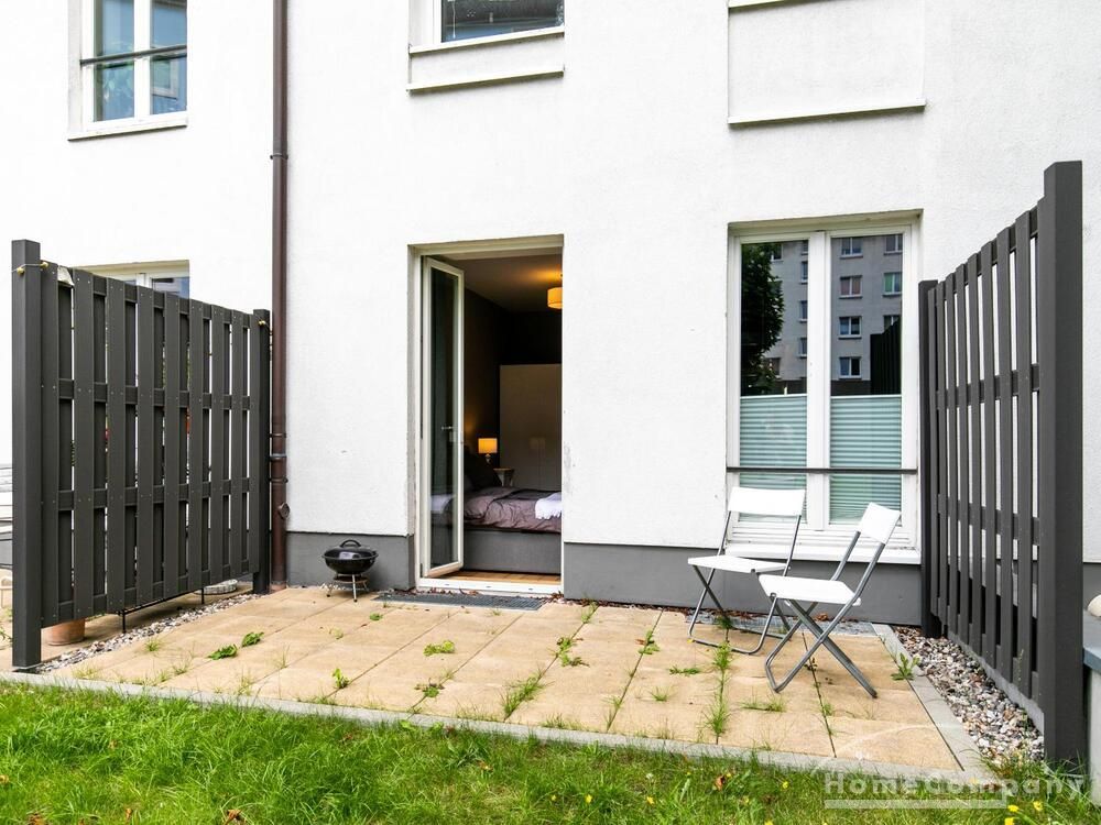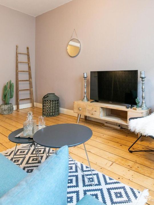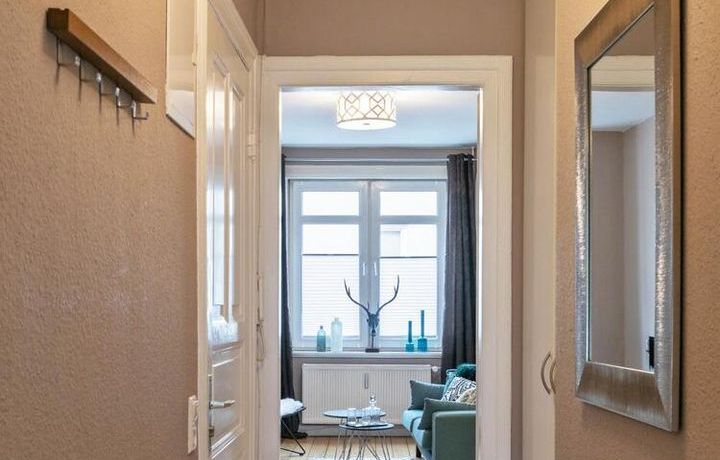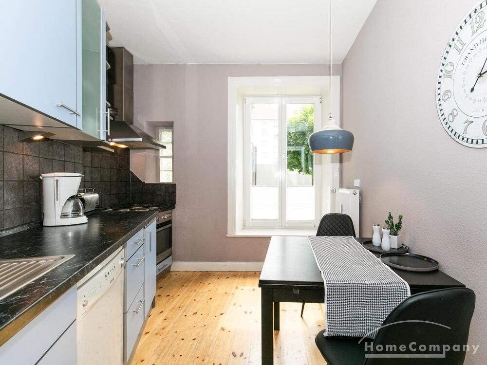 Schöne Erdgeschosswohnung in ruhiger zentraler Lage zwischen Messe und Universität. Die Wohnung verfügt über eine gut ausgestattete Wohnküche mit bodentiefem Fenster zum ruhigen Hinterhof. Auch das Schlafzimmer mit 1,60 breitem Bett ist nach hinten orientiert. Im Wohnzimmer steht ein gemütliches Sofa, Couchtisch, Sideboard und ein flatscreen-TV zur Verfügung.