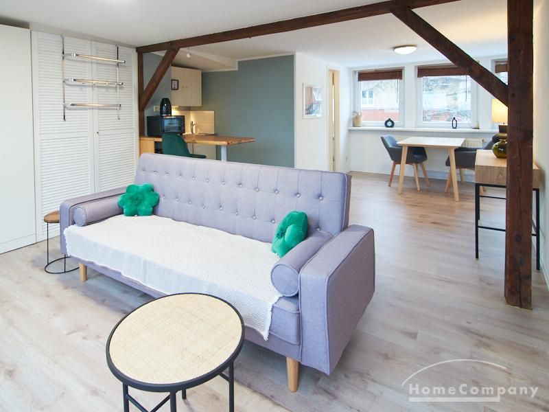Möbliertes Apartment in Hamburg Eppendorf. Das Haus liegt in einem ruhigen Innenhof zwischen Flughafen und City im schönen Eppendorf. Das Apartment hat ein großes Zimmer mit Pantry-Küche und Velux-Fenstern nach vorn und hinten raus. Das Tageslicht-Bad verfügt über eine Badewanne. In der Wohnung ist keine Waschmaschine. Ein Waschcenter ist fußläufig in ca. 2 Gehminuten erreichbar.