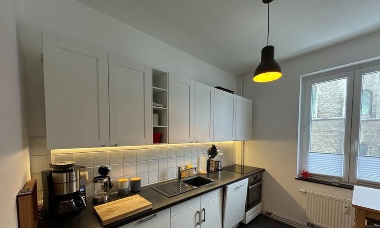 2 Zi.Wohnung, möbliert, 1. OG links. Komplett ausgestattet, u.a. mit Highspeed-Internet.