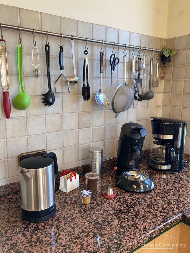 Die Wohnung verfügt über eine 16qm voll eingerichtete Küche, mit allen wünschenswerten Koch-Utensilien, inkl. Esstisch. Die vier Fenster zeigen nach Osten und Norden. Alle Elektrogeräte, wie Herd und Backofen, Geschirrspüler, Kühl-Gefrierkombination sind NEFF Markengeräte.