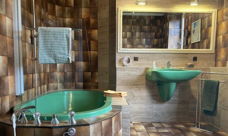 Die Wohnung verfügt über ein 10 qm großes Wannen-/ Duschbad mit Waschbecken und WC.