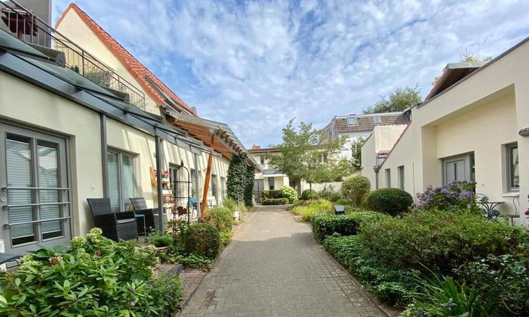 Diese attraktive, ruhige 3 Zimmer Maisonette-Wohnung befindet sich mitten in der Lübecker Altstadt in einer schönen Wohnanlage. Sie ist in sich vollkommen abgeschlossen mit extra Eingang und eigener Haustür. Im Erdgeschoss großes Wohn-Esszimmer mit Zugang zur großen Terrasse, großzügig ausgestattete offene Küche. Bad mit Badewanne, Waschmaschine und Trockner. Im Obergeschoss helles Galerie-/Arbeitszimmer mit Schreibtisch und Aktenschrank, Schlafzimmer mit Doppelbett (1,80m breit).