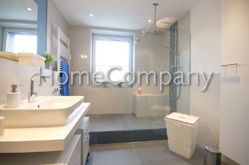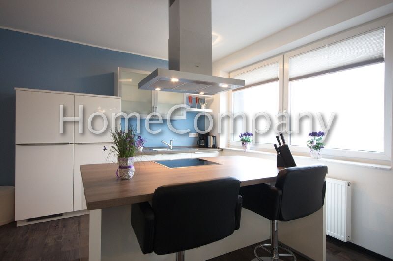 Geschmackvoll-moderne Gestaltung, komplette Ausstattung, Internetzugang vorhanden. Neues Walk-in-Duschbad, mit Fenster, Handtuchheizung, Waschbecken und Einbaumöbeln. Großer Wohnbereich mit Flachbild-TV (SAT-TV) und Sofalandschaft, abgeteilter Schlafraum mit Doppelbett und großem Kleiderschrank. Großer Ess- und Kochbereich mit komplett ausgestatter Einbauküche (Spülmaschine, Kühlschrank, Gefrierschrank) sowie Kochinsel mit zwei Barstühlen. Ein Tisch mit Bank und zwei Stühlen steht ebenfalls bereit. Waschmaschine und Trockner befinden sich in einem kleinen Hauswirtschaftsraum in der Wohnung.