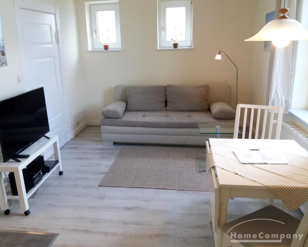 Im Wohnbereich stehen ein Esstisch mit 4 Stühlen und ein Couchtisch mit Schlafsofa und Sessel. Ein SAT-TV mit Flachbildschirm in HD-Qualität und ein DVD-Player stehen zur Verfügung.