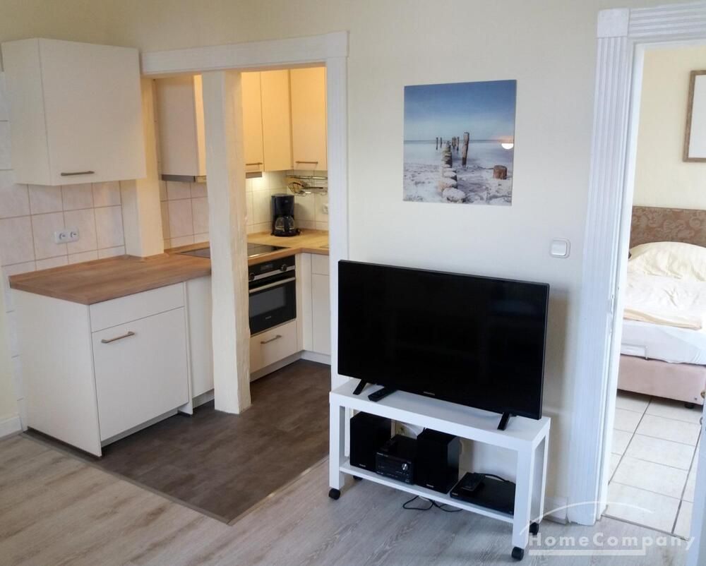 Die ca. 30 m² große 2-Zimmerwohnung hat zwei Fenster nach Westen und 1 Fenster mit Blick auf die Geibelstraße. Im Schlafzimmer stehen zwei bequemen Boxspringbetten mit verstellbaren Kopfteil (je 90 x 200 cm). Die Küche verfügt über Spüle, Kombinierten Backofen mit Mikrowelle, Cerankochfeld und einen Kühlschrank mit Drei-Sterne Gefrierfach.