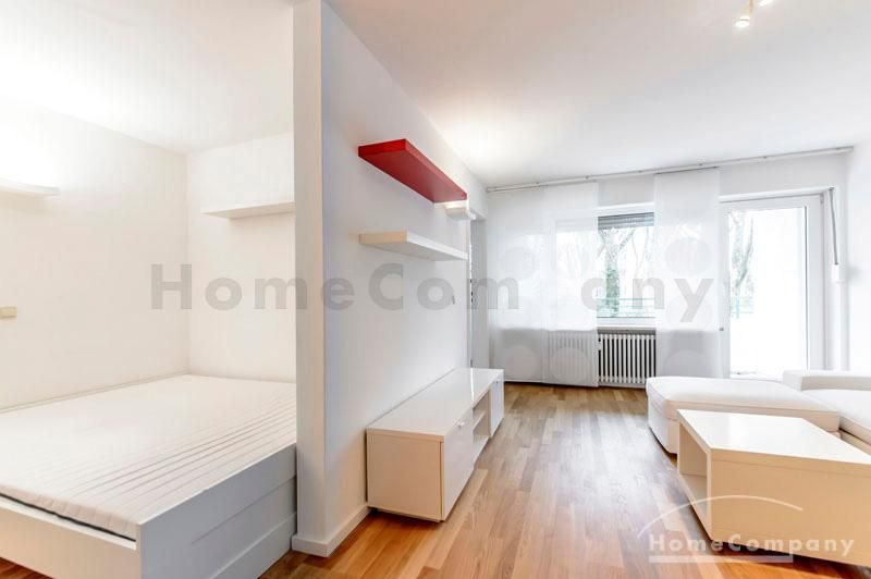 Sehr hübsche möblierte 1-5 Zimmer-Wohnung mit Balkon in Denning. Erdgeschoss, sehr ruhig mit Blick ins Grüne. Schöner heller Wohnraum mit weißem Sofa und Ess-/Arbeitstisch, bestuhlt für 4 Personen. Abgetrennter Schlafbereich mit Doppelbett (1,60 x 2m) und Sideboards. Die separate moderne weiße Einbauküche ist mit Fenster und mit allem ausgestattet, was man täglich benötigt (Cerankochfeld, Backofen, Kühl-/Gefrierkombination, Dunstabzug etc.). Das neue Bad verfügt über eine Badewanne. Eine großzügige Kammer im Eingangsbereich dient als begehbarer Schrank und bietet ausreichend Stauraum.