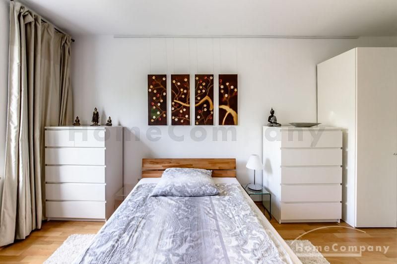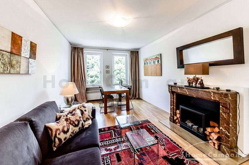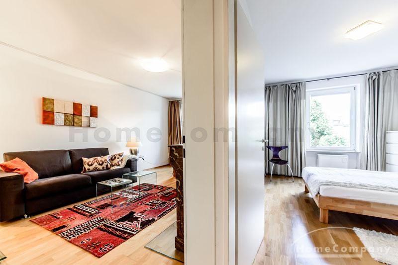 4. Stock mit Aufzug, Blick ins Grüne. Die stilvolle Möblierung des Wohnzimmers besteht aus einer komfortablen Schlafcouch und Esstisch für vier Personen. Das helle Schlafzimmer mit Doppelbett ist ruhig gelegen und bietet durch weiße Schränke und eine Kommode genügend Stauraum. Angrenzendes Bad mit Dusche und Fenster. Im Bad befindet sich auch eine Wasch-/Trockner-Kombination. Die sehr gut ausgestattete Küche verfügt über eine Spülmaschine, Mikrowelle mit integriertem Backofen und allem für den täglichen Bedarf. In der Wohnung ist schöner gepflegter Parkettboden verlegt. Direkt vor der Haustüre ist ein kleiner Park mit schönen alten Bäumen, Geschäfte und öffentliche Verkehrsmittel sind in wenigen Gehminuten erreichbar. Internet vorhanden.