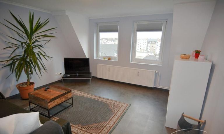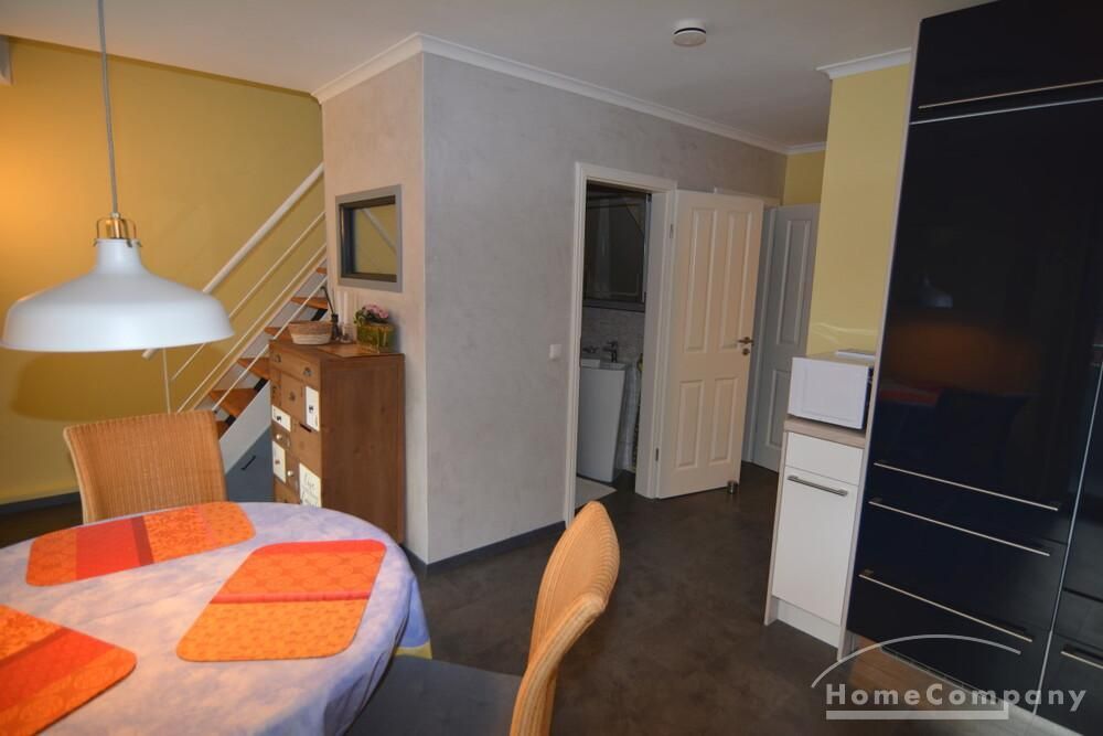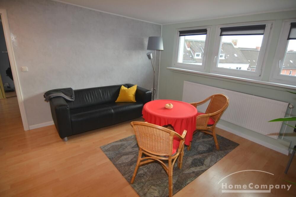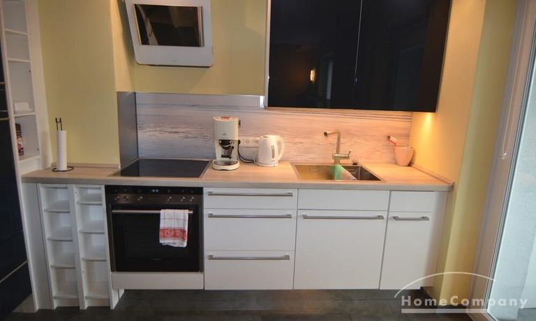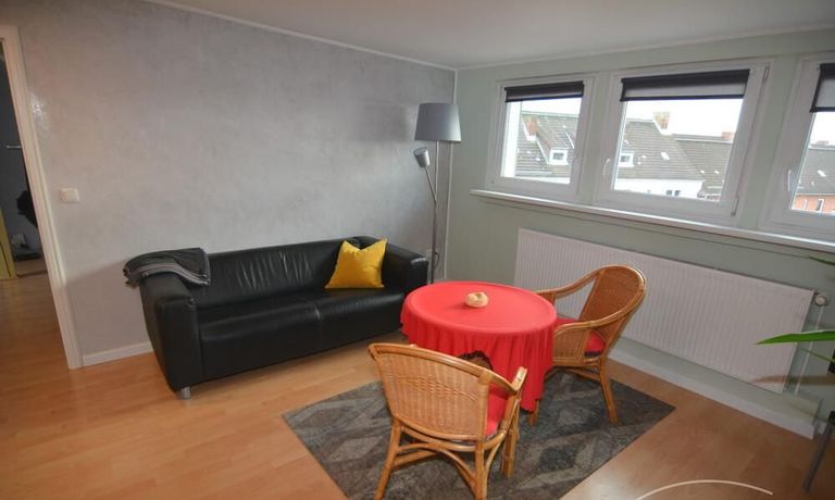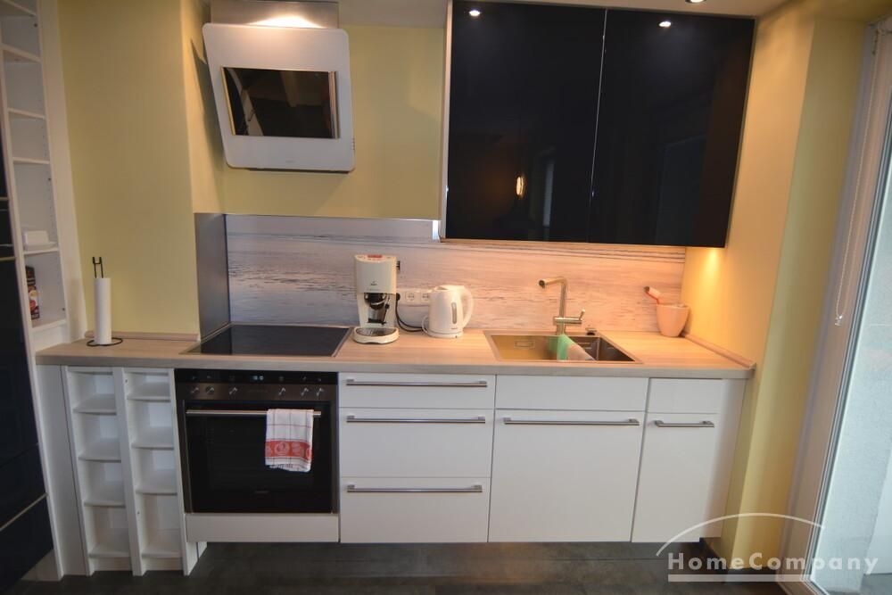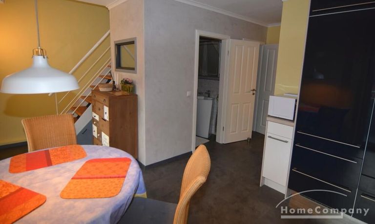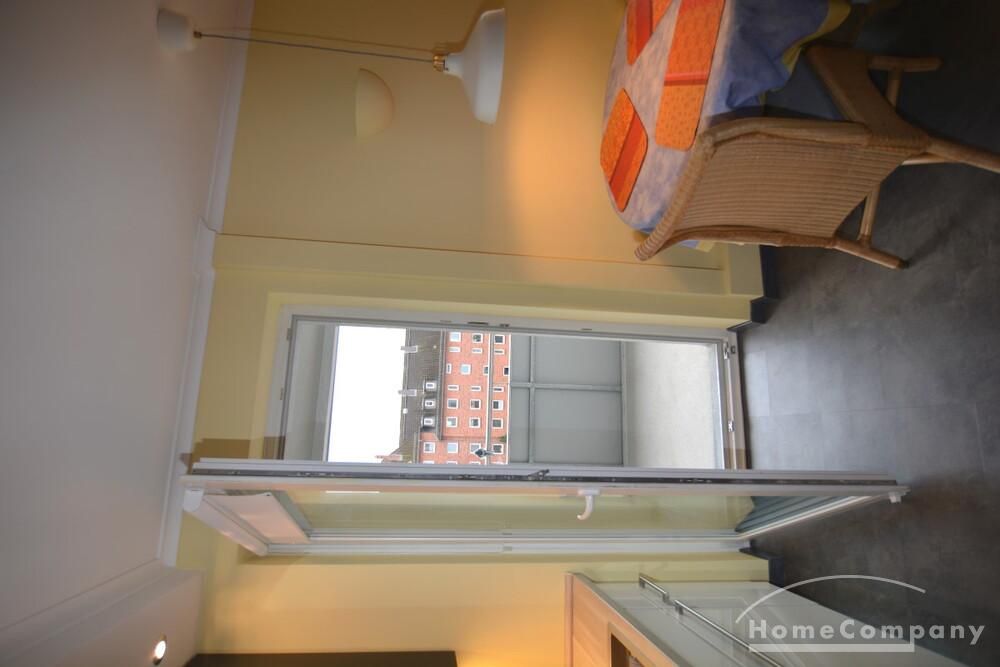 Die renovierte Zwei-Zimmer-Maisonettewohnung liegt im 4. und 5. Obergeschoß eines Mehrfamilienhauses im Stadtteil Kiel-Ravensberg. Die Wohnung liegt in Uninähe und unweit der Innenstadt. Sie wurde mit neuen Möbeln ausgestattet und hat einen hübschen Balkon, eine helle, saubere offene Einbauküche mit Geschirrspüler und Essbereich. Das moderne Bad ist mit einer Wanne und einer Duschkabine ausgestattet, das WC ist separat.