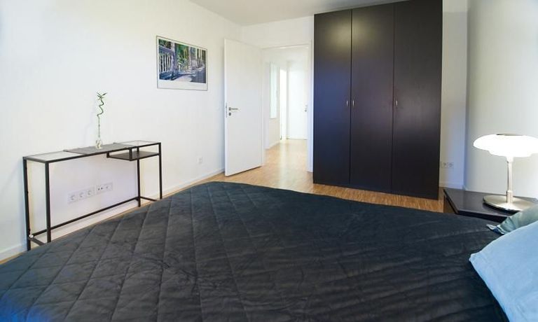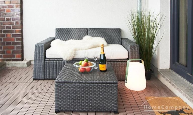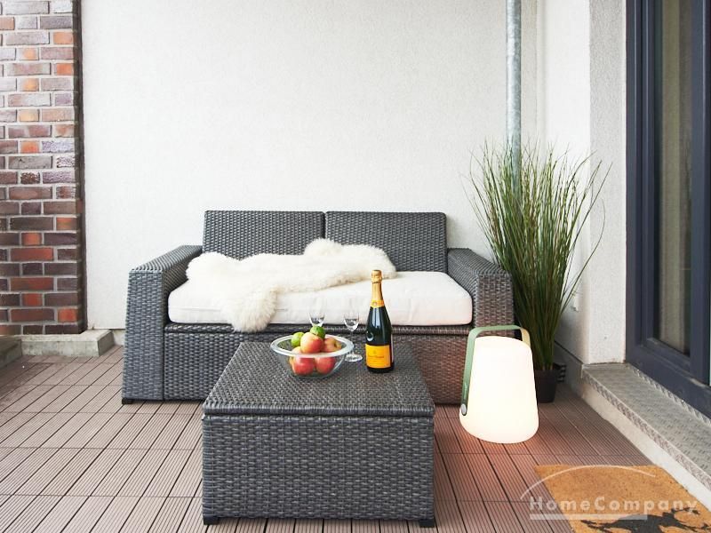 Im Schlafzimmer steht ein 1,40 breites Bett und reichlich Schrankraum zur Verfügung. Das Duschbad ist mit hellen Fliesen ausgestattet. Ein besonderes Highlight ist der große, mit einem Gartenlounge Sofa, Beistelltisch und Stühlen ausgestattete Balkon. Ein Tiefgaragenstellplatz ist im Mietpreis enthalten (SUV geeignet).