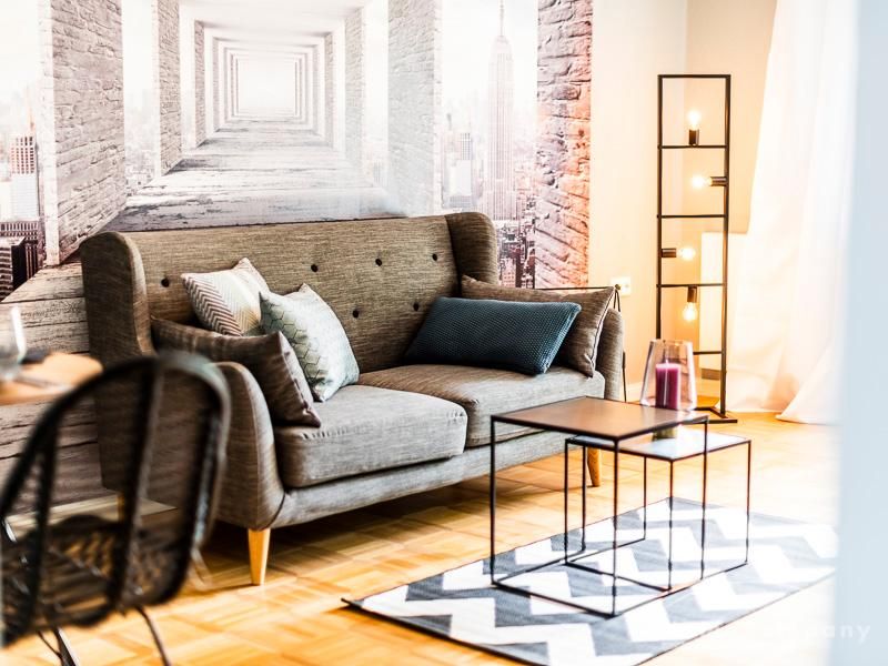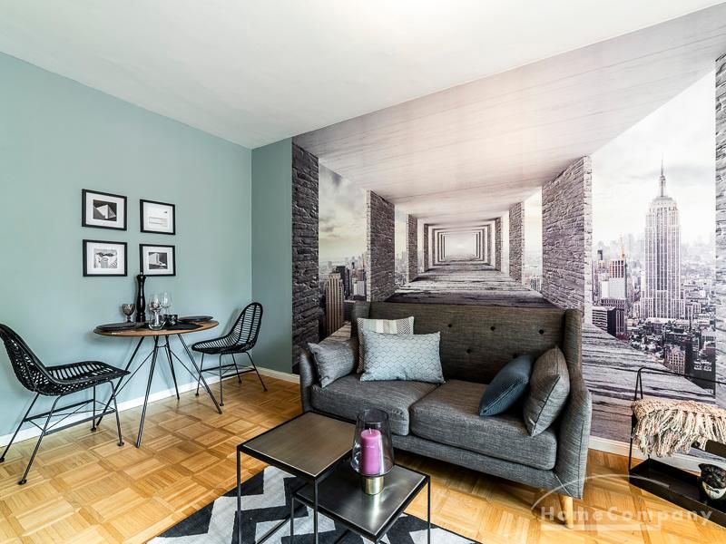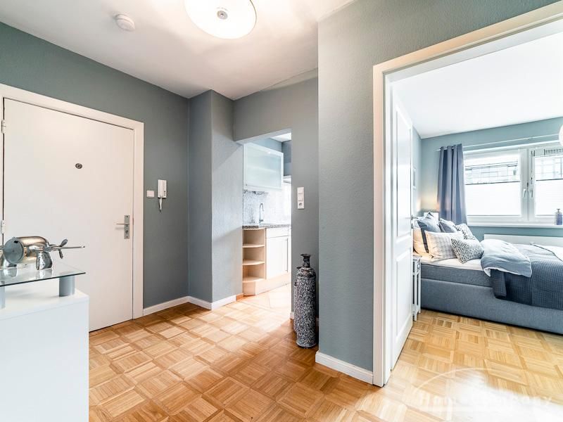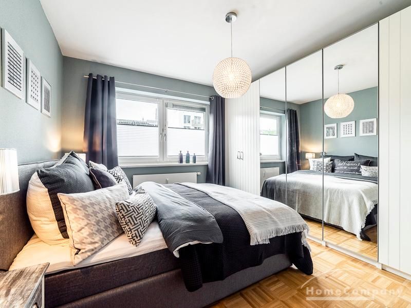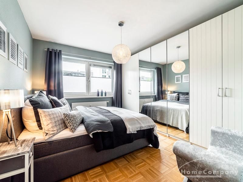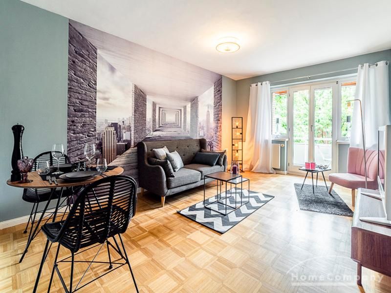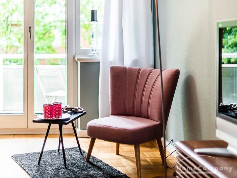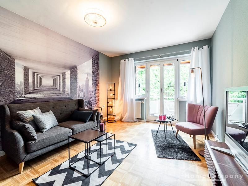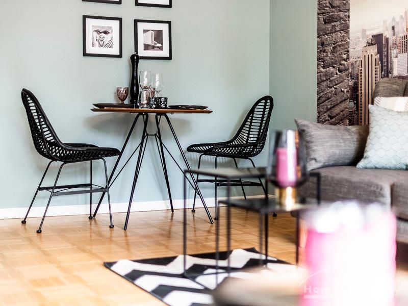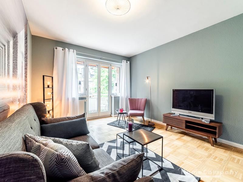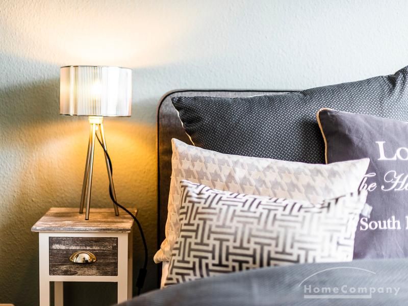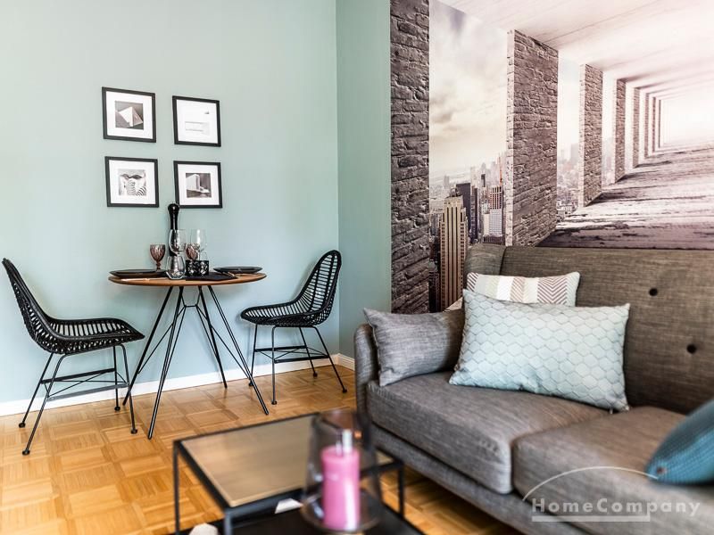 Stylische Ruheoase in zentraler Lage für beruflich mobile Mieter. Vintage Chic kombiniert mit modernen Elementen lassen die Räume mit Eleganz, Charakter und Stil erstrahlen. Ein urbanes, modernes Lebensgefühl sind hier zu einem zeitgemäßen Businesslook mit Originalität vereint: Die Wandgestaltung in grau-blau-Tönen sowie Grau-, schwarz-weiß- und Holztönen bei der Auswahl von Mobiliar sorgen für eine Atmosphäre, in der die Wohnzimmermöbel den Eindruck erwecken, dass sie eher dezent zurücktreten, um der einzigartigen Tapete ihren großen Auftritt zu überlassen. Edel anmutendes Walnuss- und Nussbaumholz und gezielt eingesetzte Vintage-Chic-Elemente werden geschickt mit messing-und zinkfarbenen sowie glänzendem Kupfer- und Chrom-Accessoires kombiniert, die der Wohnung einen authentischen, einzigartigen Charakter und einen exklusiven Touch verleihen. Farbliche Highlights setzen ein schwarz-weißer geometrisch-gemusterter Teppich, ein cooler Retro-Sessel in mauve sowie Accessoires, um das Wohlfühlambiente abzurunden.Vor dem Mietbeginn ist ein Reinigungsdeposit in Höhe von 5,50 €/m², jedoch mindestens 250,00 €, zu entrichten.Virtuelle Wohnungsbesichtigung mit 360° Rundumansichten: http://panocreator.com/view/gallery/id/VR21KAngaben zum Energieausweis nach § 16a EnEV 2014: Art des Energieausweises: EnergieverbrauchsausweisWert des Endenergieverbrauchs: 145 kWh/(m²*a)Wesentlicher Energieträger für die Heizung des Gebäudes: ErdgasGebäudebaujahr: 1956Energieeffizienzklasse: E