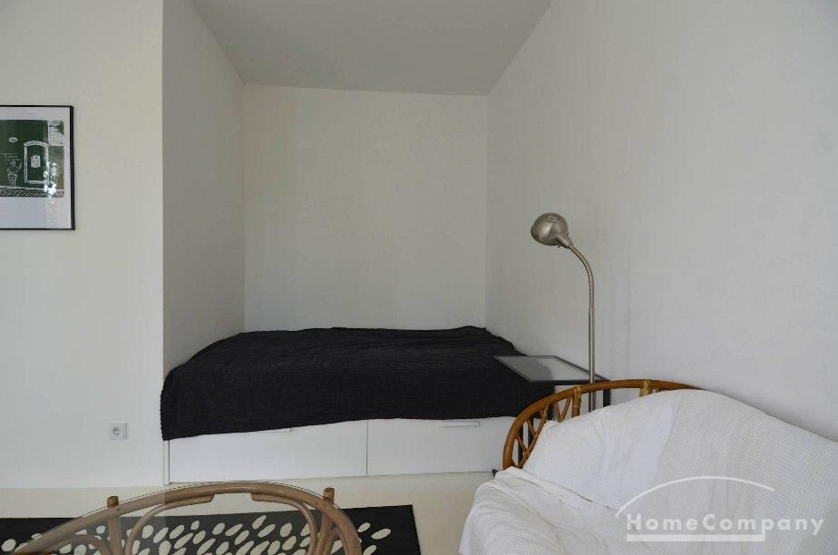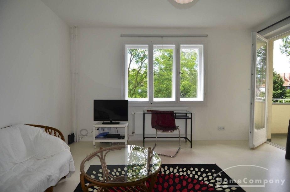 Helle, renovierte Ein-Zimmer-Wohnung in Berlin Tempelhof, mit Balkon und Blick zum grünen Hof. Dieses Mietobjekt ist komplett eingerichtet, mit schönem Vintage- und schlichtem Ikea-Mobiliar. Ein hochwertig eingerichtetes Bad gehört ebenfalls zum Inventar. In der Küche kann man gemütlich sitzen, es gibt ein Glaskochfeld und einen kleinen Ofen. Schnelle Internetverbindung vorhanden (500mbit/sek).