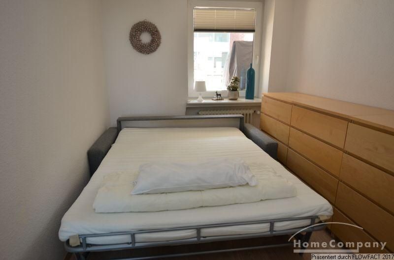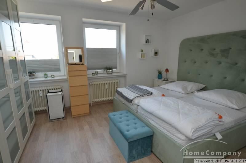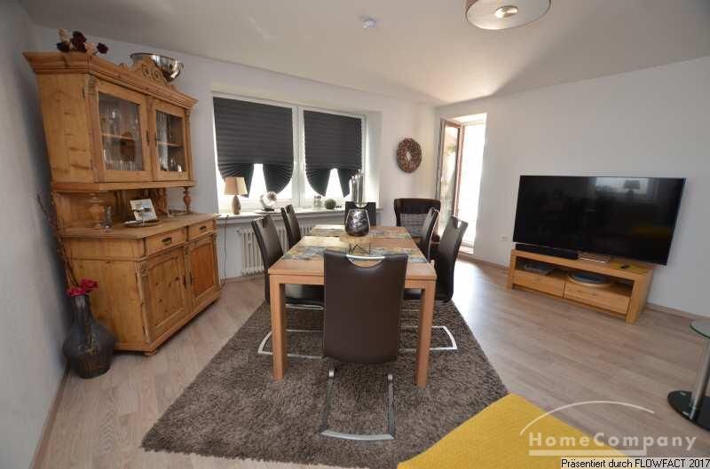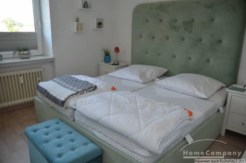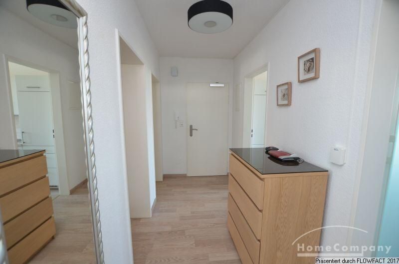 Über den zentralen Flur sind alle Räume zugänglich. Besonders das geschmackvoll möblierte Wohnzimmer, mit seiner großzügigen Couchgarnitur und einem Esstisch mit 6 Stühlen lässt keine Wünsche offen. Der anschließende Süd-Balkon liegt ruhig zur Rückfront. Die Küche ist voll ausgestattet. Im Schlafzimmer befindet sich ein großzügiges Doppelbett und ein Kleiderschrank mit viel Platz. Ein zweites Schlafzimmer ermöglich die Nutzung als Paar mit Kind, oder zwei von zwei Kollegen. Das moderne Duschbad mit einem Fenster befindet sich an der Stirnseite des Flures. Ein PKW-Stellplatz gehört zur Wohnung.