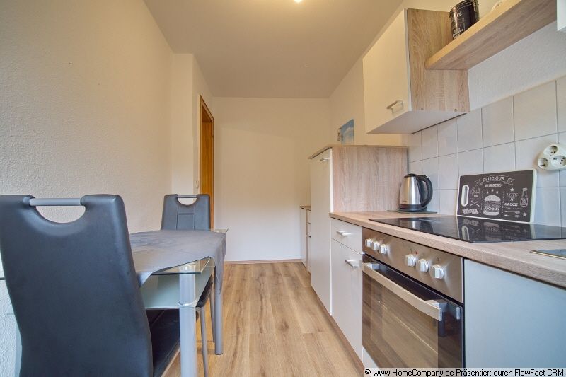 Die Wohnung ist komplett möbliert und komfortabel eingerichtet. Im Wohnschlafzimmer steht eine ausziehbare Schlafcouch mit einer Liegefläche von 1,40 mal 2,00 Metern. Dazu gibt es einen Kleiderschrank, einen Esstisch mit Platz für zwei Personen sowie einen modernen Fernseher mit Kabelanschluss. Die Küche ist voll ausgestattet und verfügt über ein Ceranfeld mit Backofen, eine Mikrowelle sowie einen Kühlschrank mit Gefrierfach. Das Duschbad ist hell gefliest und über die Diele zu erreichen. Der Internetzugang über eine Flatrate ist im Mietpreis enthalten und rundet das Angebot ab.